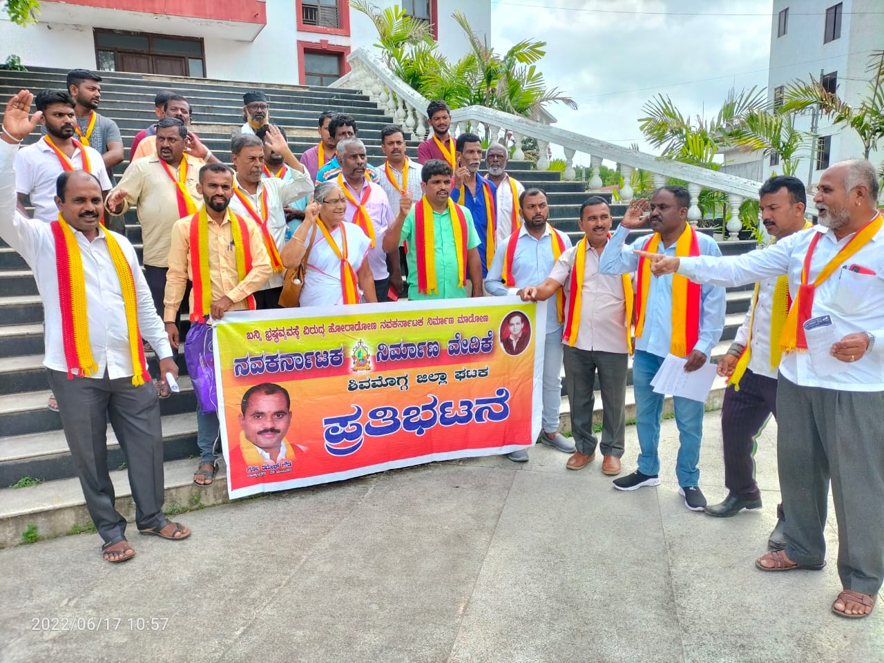 ಶಿವಮೊಗ್ಗ: ಬೊಮ್ಮನಕಟ್ಟೆ ಆಶ್ರಯ ಬಡಾವಣೆಯಲ್ಲಿ ನಕಲಿ ದಾಖಲೆ ಸೃಷ್ಟಿ ಮಾಡಿ ಭೂ ಮಾಫಿಯಾ ನಡೆಸುತ್ತಿರುವವರ ವಿರುದ್ಧ ಸೂಕ್ತ ಕಾನೂನು ಕ್ರಮ ಕೈಗೊಳ್ಳಲು ಆಗ್ರಹಿಸಿ ನವಕರ್ನಾಟಕ ನಿರ್ಮಾಣ ವೇದಿಕೆ ವತಿಯಿಂದ ಇಂದು ಜಿಲ್ಲಾಧಿಕಾರಿಗಳ ಕಚೇರಿ ಆವರಣದಲ್ಲಿ ಪ್ರತಿಭಟನೆ ನಡೆದು ಜಿಲ್ಲಾಧಿಕಾರಿಗಳಿಗೆ ಮನವಿ ಸಲ್ಲಿಸಲಾಯಿತು.
