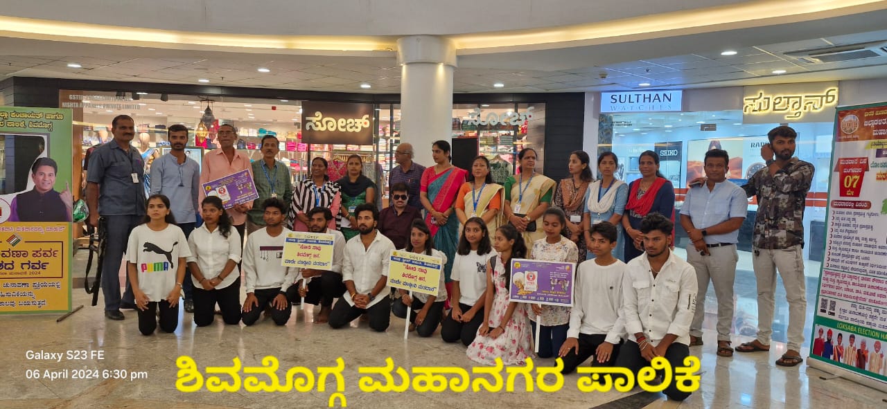 ಶಿವಮೊಗ್ಗದ ಸಿಟಿ ಸೆಂಟರ್ ಮಾಲ್ ನಲ್ಲಿ ಸ್ವೀಪ್ ವತಿಯಿಂದ ನೃತ್ಯದ ಮೂಲಕ ಮತದಾನ ಜಾಗೃತಿ ಮೂಡಿಸಲಾಯಿತು.