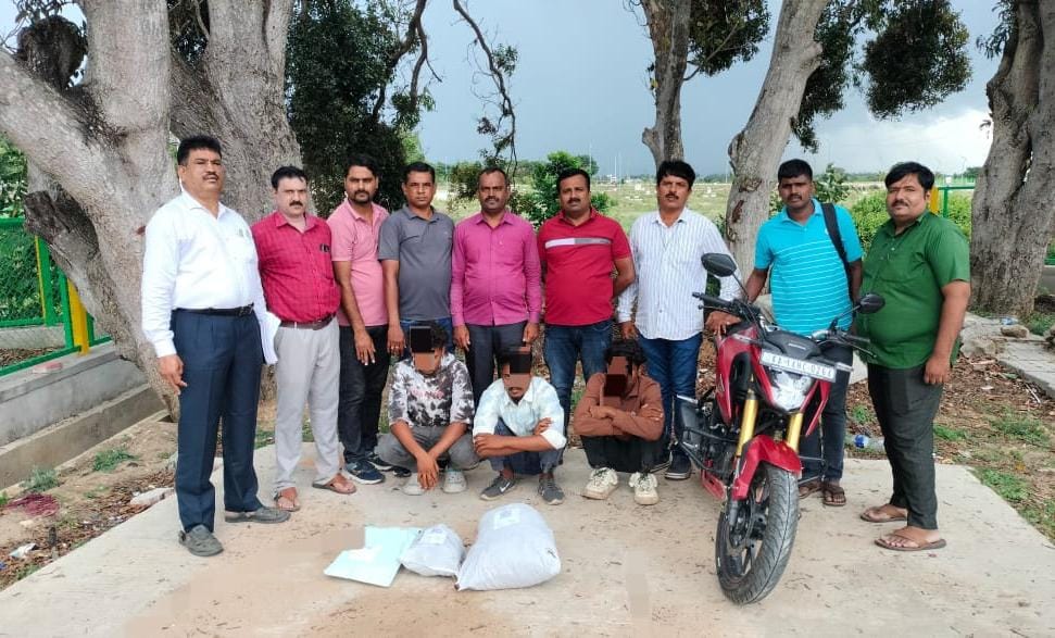 ಶಿವಮೊಗ್ಗ ನಗರದ ಸೋಮಿನಕೊಪ್ಪದಿಂದ ಗೆಜ್ಜೇನಹಳ್ಳಿಗೆ ಹೋಗುವ ದಾರಿಯ ಹೊಸದಾಗಿ ನಿರ್ಮಾಣವಾಗುತ್ತಿರುವ 7 ಹಿಲ್ಸ್ ನೂತನ ಬಡಾವಣೆಯ ಪಾರ್ಕ ಪಕ್ಕದಲ್ಲಿ ಮಾದಕ ವಸ್ತು ಗಾಂಜಾವನ್ನು ಸಾರ್ವಜನಿಕರಿಗೆ ಮಾರಾಟ ಮಾಡುತ್ತಿರುವ ಬಗ್ಗೆ ಬಂದ ಖಚಿತ ಮಾಹಿತಿಯ ಮೇರೆಗೆ ಶ್ರೀ ಮಿಥುನ್ ಕುಮಾರ್ ಜಿ. ಕೆ ಪೊಲೀಸ್ ಅಧೀಕ್ಷಕರು, ಶಿವಮೊಗ್ಗ ಜಿಲ್ಲೆ, ಮತ್ತು ಶ್ರೀ ಅನಿಲ್ ಕುಮಾರ್ ಭುಮರಡ್ಡಿ, ಹೆಚ್ಚುವರಿ ಪೊಲೀಸ್ ಅಧಿಕ್ಷಕರು-1, ಶಿವಮೊಗ್ಗ ಜಿಲ್ಲೆ ರವರ ಮಾರ್ಗದರ್ಶನದಲ್ಲಿ, ಶ್ರೀ ಕೃಷ್ಣಮೂರ್ತಿ ಕೆ ಪೊಲೀಸ್ ಉಪಾಧೀಕ್ಷಕರು ಸಿಇಎನ್ ಕ್ರೈಂ ಪೊಲೀಸ್ ಠಾಣೆ ರವರ ನೇತೃತ್ವದ ಸಿಬ್ಬಂಧಿಗಳಾದ ಶೇಖರ್ ಎಎಸ್ಐ, ಧರ್ಮಾ ನಾಯ್ಕ ಹೆಚ್ಸಿ, ಅವನಾಶ ಹೆಚ್ಸಿ, ನಾರಾಯಣ ಸ್ವಾಮಿ ಪಿಸಿ, ಪರಮೇಶ್ವರಪ್ಪ ಟಿ ಪಿಸಿ, ಫಿರ್ದೊಸ್ ಅಹಮದ್ ಪಿಸಿ, ರವಿ ಬಿ ಪಿಸಿ, ಆಂಡ್ರ್ಯೂಸ್ ಜೊನ್ಸ್ ಪಿಸಿ, ಮತ್ತು ಶರತ್ ಕುಮಾರ್ ಬಿ ಎಸ್ ಪಿಸಿ* ತಂಡವು ಸ್ಥಳಕ್ಕೆ ಹೋಗಿ ದಾಳಿ ನಡೆಸಿ ಆರೋಪಿ 1) ರಾಜೇಂದ್ರ ಕಾಣೋಜಿ, 22 ವರ್ಷ, ವಾಸ ರಾಜ್ಮಾಲಿ ಗ್ರಾಮ ಬರವಾನಿ ಜಿಲ್ಲೆ ಮದ್ಯ ಪ್ರದೇಶ ರಾಜ್ಯ, ಇವನು ಮದ್ಯ ಪ್ರದೇಶ ರಾಜ್ಯದಿಂದ ಬಸ್ ಮೂಲಕ ಶಿವಮೊಗ್ಗಕ್ಕೆ ಬಂದು ಗಾಂಜಾ ಸೊಪ್ಪನ್ನು 2) ಜಾವೀದ್ ಅಲ್ಲಿಸಾಬ್ ದೊಡ್ಮನಿ, 22 ವರ್ಷ, ವಾಸ ಆರ್ಶಯ ಬಡಾವಣೆ ಬೊಮ್ಮಕನಟ್ಟೆ ಶಿವಮೊಗ್ಗ. ಮತ್ತು 3) ಪರುಶುರಾಮ್ ಬಿನ್ ನಾಗೇಂದ್ರ ಹೆಚ್ 19 ವರ್ಷ ವಾಸ ಆರ್ಶಯ ಬಡಾವಣೆ ಬೊಮ್ಮನಕಟ್ಟೆ ಶಿವಮೊಗ್ಗ. ಇವರಿಗೆ ಮಾರಾಟ ಮಾಡಿ ಹಣ ಪಡೆದುಕೊಳ್ಳಲು ಪ್ರಯತ್ನಿಸುತ್ತಿದ್ದವರ ಮೇಲೆ ದಾಳಿ ನಡೆಸಿ, ಈ ಮೇಲ್ಕಂಡ ಮೂರು ಆಸಾಮಿಗಳ ಬಳಿ ಇದ್ದ ಅಂದಾಜು ಮೌಲ್ಯ 70,000/- ರೂಗಳ 2 ಕೆಜಿ 735 ಗ್ರಾಂ ತೂಕದ ಒಣ ಗಾಂಜಾ ಮತ್ತು ಒಂದು ಹೊಂಢಾ ಕಂಪನಿಯ ಬೈಕ್ ಹಾಗೂ 02 ಮೊಬೈಲ್ಗಳನ್ನು ಅಮಾನತ್ತು ಪಡಿಸಿಕೊಂಡು ಸಿಇಎನ್ ಪೊಲೀಸ್ ಠಾಣಾ ಗುನ್ನೆ ನಂ 40/2025 ಕಲಂ 20(b)(ii)(B) ರ ರೀತ್ಯಾ ಪ್ರಕರಣ ದಾಖಲಿಸಿ ನ್ಯಾಯಾಲಯಕ್ಕೆ ಹಾಜರು ಪಡೆಸಿದ್ದು ನ್ಯಾಯಾಲಯವು ಆರೋಪಿಗಳನ್ನು ನ್ಯಾಯಾಂಗ ಬಂದನಕ್ಕೆ ನೀಡಿರುತ್ತೆ.