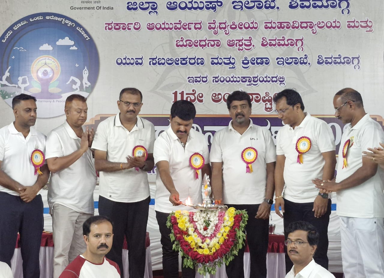 ಜಿಲ್ಲಾ ಆಯುಷ್ ಇಲಾಖೆ, ಸರ್ಕಾರಿ ಆಯುರ್ವೇದ ವೈದ್ಯಕೀಯ ಮಹಾವಿದ್ಯಾಲಯ ಮತ್ತು ಬೋಧನಾ ಆಸ್ಪತ್ರೆ ಹಾಗೂ ಯುವ ಸಬಲೀಕರಣ ಮತ್ತು ಕ್ರೀಡಾ ಇಲಾಖೆ ಶಿವಮೊಗ್ಗ ಇವರ ಸಂಯುಕ್ತಾಶ್ರಯದಲ್ಲಿ ಶನಿವಾರ ನಗರದ ನೆಹರು ಒಳಾಂಗಣ ಕ್ರೀಡಾಂಗಣದಲ್ಲಿ ‘ಒಂದು ಭೂಮಿ ಒಂದು ಆರೋಗ್ಯಕ್ಕಾಗಿ ಯೋಗ’ ಎಂಬ ಘೋಷವಾಕ್ಯದೊಂದಿಗೆ ಆಯೋಜಿಸಿದ್ದ 11 ನೇ ಅಂತಾರಾಷ್ಟ್ರೀಯ ಯೋಗ ದಿನಾಚರಣೆಯ ಕಾರ್ಯಕ್ರಮವನ್ನು ಉದ್ಘಾಟಿಸಿ ಅವರು ಮಾತನಾಡಿದರು.