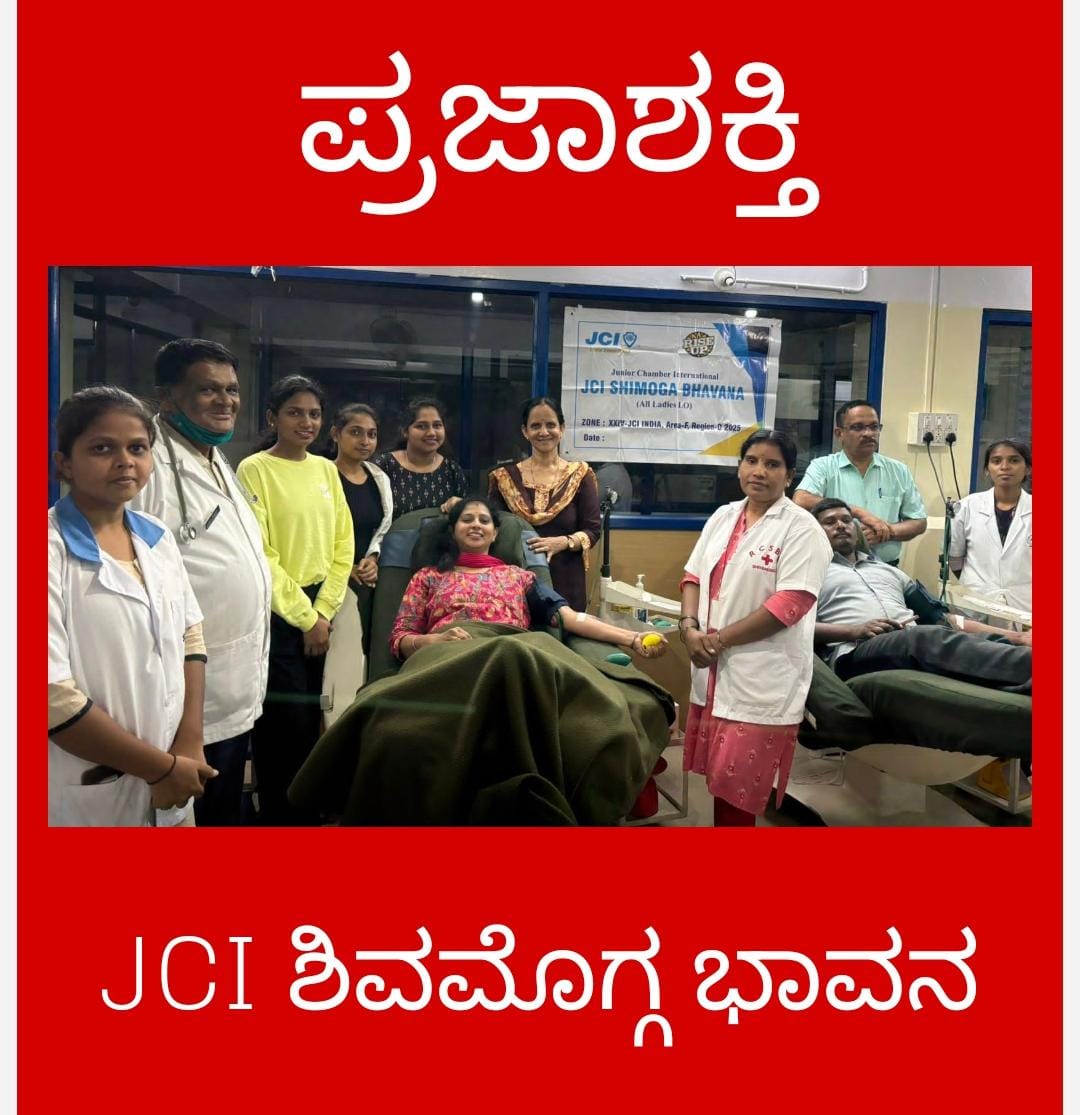 ಜೆಸಿಐ ಭಾವನ ಶಿವಮೊಗ್ಗ ವತಿಯಿಂದ ರೆಡ್ ಕ್ರಾಸ್ ಸಂಜೀವಿನಿ ರಕ್ತ ನಿಧಿಯಲ್ಲಿ ರಕ್ತದಾನ ಶಿಬಿರವನ್ನು ಆಯೋಜಿಸಿದು ಜೆಸಿಐ ಭಾವನ ಶಿವಮೊಗ್ಗ ಅಧ್ಯಕ್ಷರು ಹಾಗೂ ಮಾಜಿ ಮಹಾನಗರ ಪಾಲಿಕೆ ವಿರೋಧ ಪಕ್ಷದ ನಾಯಕಿ ರೇಖಾ ರಂಗನಾಥ್ ರವರು ರಕ್ತದಾನ ಮಾಡುವ ಮೂಲಕ ಉದ್ಘಾಟಿಸಿದರು.ನಂತರ ಅನೇಕ ಸದಸ್ಯರು ರಕ್ತದಾನ ಮಾಡಿದರು.
