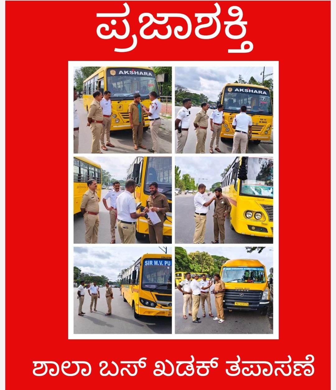 ಶಾಲಾ ಮಕ್ಕಳಸುರಕ್ಷತೆಯ ದೃಷ್ಠಿಯಿಂದ ಶಿವಮೊಗ್ಗ ನಗರದ ಸಂಚಾರ ಪೊಲೀಸ್ ಠಾಣೆಯ ಪೊಲೀಸ್ ಅಧಿಕಾರಿ ಹಾಗೂ ಸಿಬ್ಬಂದಿಯವರು ಶಿವಮೊಗ್ಗ ನಗರದದಾದ್ಯಂತ ವಿವಿಧ ಸ್ಥಳಗಳಲ್ಲಿ ಹಾಗೂ ಪ್ರಮುಖ ವೃತ್ತಗಳಲ್ಲಿ ಶಾಲೆಗಳಿಗೆ ಮಕ್ಕಳನ್ನು ಕರೆದುಕೊಂಡು ಹೋಗುವ ಶಾಲಾ ಕಾಲೇಜು ವಾಹನಗಳನ್ನು ತಪಾಸಣೆ ಮಾಡಿ, ನಿಯಮ ಉಲ್ಲಂಘನೆ ಮಾಡಿದ ವಾಹನ ಚಾಲಕರ ವಿರುದ್ಧ 01) CARRYING EXCESS SCHOOL CHILDREN -17 ಪ್ರಕರಣಗಳು, 02) DRUNK AND DRIVE-04 ಪ್ರಕರಣಗಳು ಮತ್ತು 03) FITNESS EXPIRED (FC)-03 ಪ್ರಕರಣಗಳನ್ನು ದಾಖಲಿಸಿ ಕ್ರಮ ಕೈಗೊಂಡಿರುತ್ತದೆ