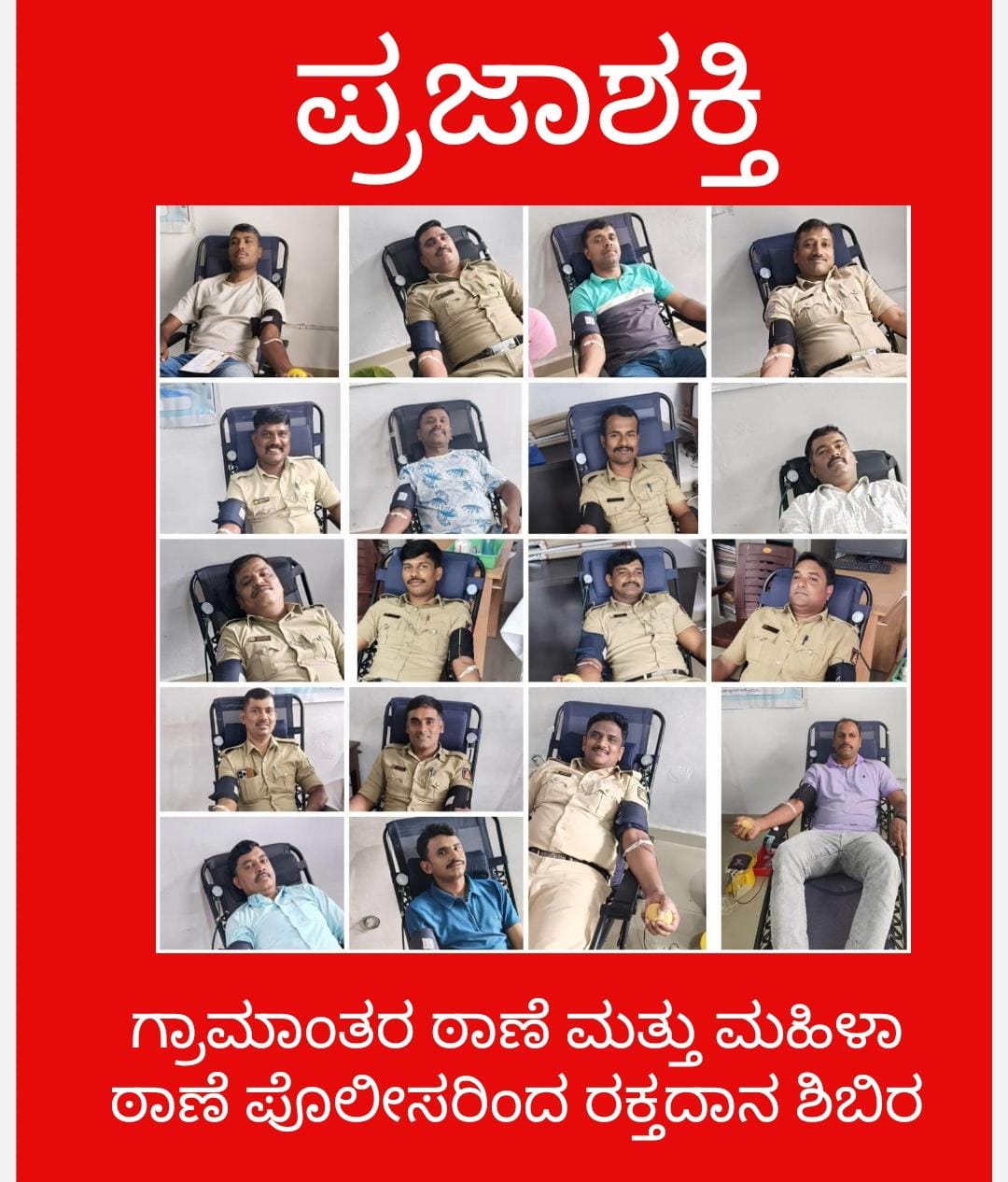 ಶಿವಮೊಗ್ಗ ಗ್ರಾಮಾಂತರ ಠಾಣೆ ಹಾಗೂ ಶಿವಮೊಗ್ಗ ಮಹಿಳಾ ಠಾಣೆ ಯ ಪೊಲೀಸ್ ಅಧಿಕಾರಿ ಹಾಗೂ ಸಿಬ್ಬಂಧಿಗಳು ಸೇರಿ, ಶಿವಮೊಗ್ಗ ಗ್ರಾಮಾಂತರ ಠಾಣೆಯಲ್ಲಿ ಸ್ವಯಂಪ್ರೇರಿತ ರಕ್ತದಾನ ಶಿಬಿರವನ್ನನು