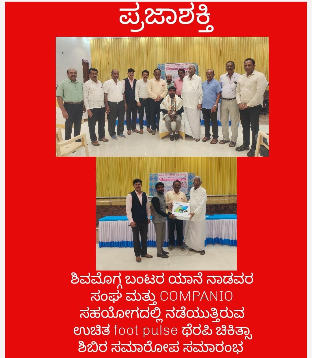 ಬಂಟರ ಯಾನೆ ನಾಡವರ ಸಂಘ ಶಿವಮೊಗ್ಗ ಮತ್ತು COMPANIO ಸಹಯೋಗದಲ್ಲಿ 11 ದಿನದಿಂದ ನಡೆದ ಉಚಿತ FOOT PULSE ಥೆರಪಿ ಚಿಕಿತ್ಸಾ ಶಿಬಿರ ಸಮಾರೋಪ ಸಮಾರಂಭ ನಡೆಯಿತು.