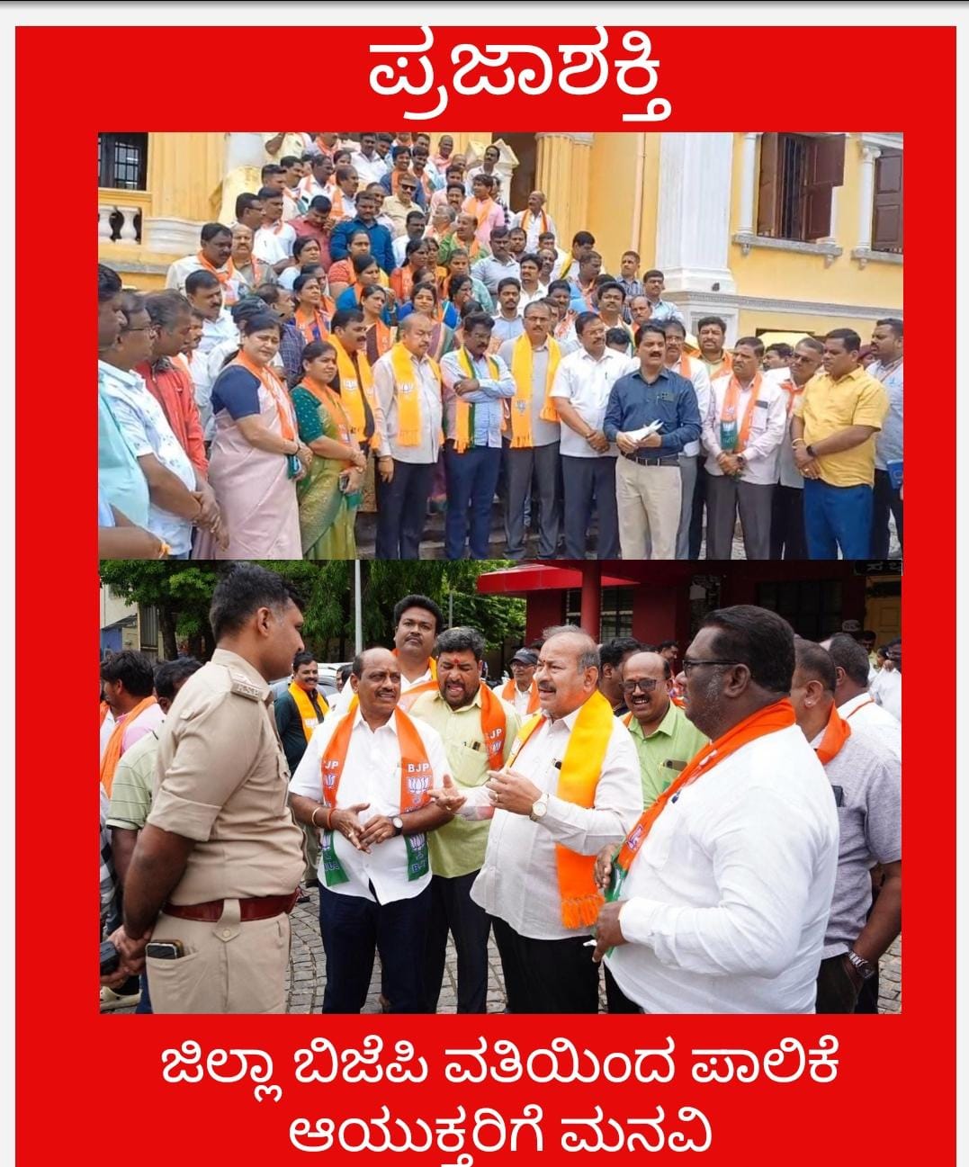 ಜಿಲ್ಲಾ ಬಿಜೆಪಿ ಶಾಸಕ ಚನ್ನಬಸಪ್ಪ ನೇತೃತ್ವದಲ್ಲಿ ಮಹಾನಗರ ಪಾಲಿಕೆ ಆಯುಕ್ತರದ ಮಾಯಣ್ಣ ಗೌಡರಿಗೆ ಮನವಿ ಪತ್ರ ಸಲ್ಲಿಸಿದರು.ಶಿವಮೊಗ್ಗ ನಗರದ ರಾಗಿಗುಡ್ಡ ಬಂಗಾರಪ್ಪ ಬಡಾವಣೆಯಲ್ಲಿ ಗಣೇಶ ಮೂರ್ತಿ ಭಗ್ನಗೊಳಿಸಿರುವ ಹಾಗೂ ನಾಗರ ವಿಗ್ರಹವನ್ನು ಚರಂಡಿಗೆ ಎಸೆದಿರುವ ಆರೋಪ ಕೇಳಿಬಂದಿದೆ.ಇದರ ಜೊತೆಗೆ, ಸರ್ಕಾರಿ ಜಾಗದಲ್ಲಿ ಅಕ್ರಮ ಕಟ್ಟಡ ನಿರ್ಮಾಣ ಮತ್ತು ಅನೈತಿಕ ಚಟುವಟಿಕೆಗಳ ಕುರಿತು ಗಂಭೀರ ಆರೋಪಗಳು ಕೇಳಿಬಂದಿದ್ದು.ಈ ಕುರಿತು ತನಿಖೆ ನಡೆಸಿ, ಅಕ್ರಮ ಕಟ್ಟಡಗಳನ್ನು ತೆರವುಗೊಳಿಸುವಂತೆ ಶಿವಮೊಗ್ಗ ಬಿಜೆಪಿ ನಿಯೋಗ ಇಂದು ಶಿವಮೊಗ್ಗ ಮಹಾನಗರ ಪಾಲಿಕೆ ಆಯುಕ್ತರಿಗೆ ಮನವಿ ಸಲ್ಲಿಸಿದೆ.