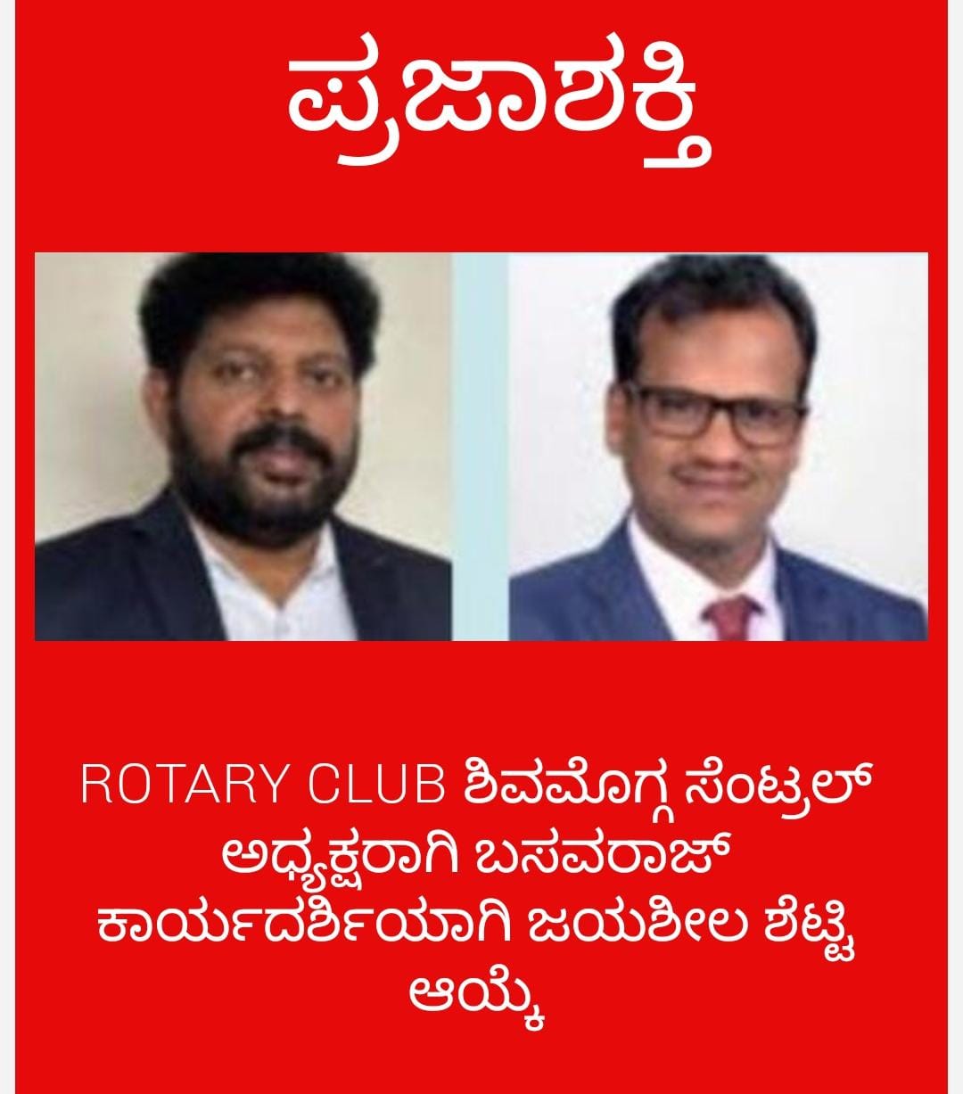 ರೋಟರಿ ಕ್ಲಬ್ ಶಿವಮೊಗ್ಗ ಸೆಂಟ್ರಲ್ ನೂತನ ಅಧ್ಯಕ್ಷರಾಗಿ ಬಸವರಾಜ್ ಕಾರ್ಯದರ್ಶಿಯಾಗಿ ಜಯಶೀಲ್ ಶೆಟ್ಟಿ ಆಯ್ಕೆಯಾಗಿದ್ದಾರೆ. ನಗರದ ರೋಟರಿ ಭವನದಲ್ಲಿ ಅಧ್ಯಕ್ಷರು ಕಾರ್ಯದರ್ಶಿ ಮತ್ತು ಪದಾಧಿಕಾರಿಗಳ ಪದಗ್ರಹಣ ಸಮಾರಂಭ ನಡೆಯಿತು.