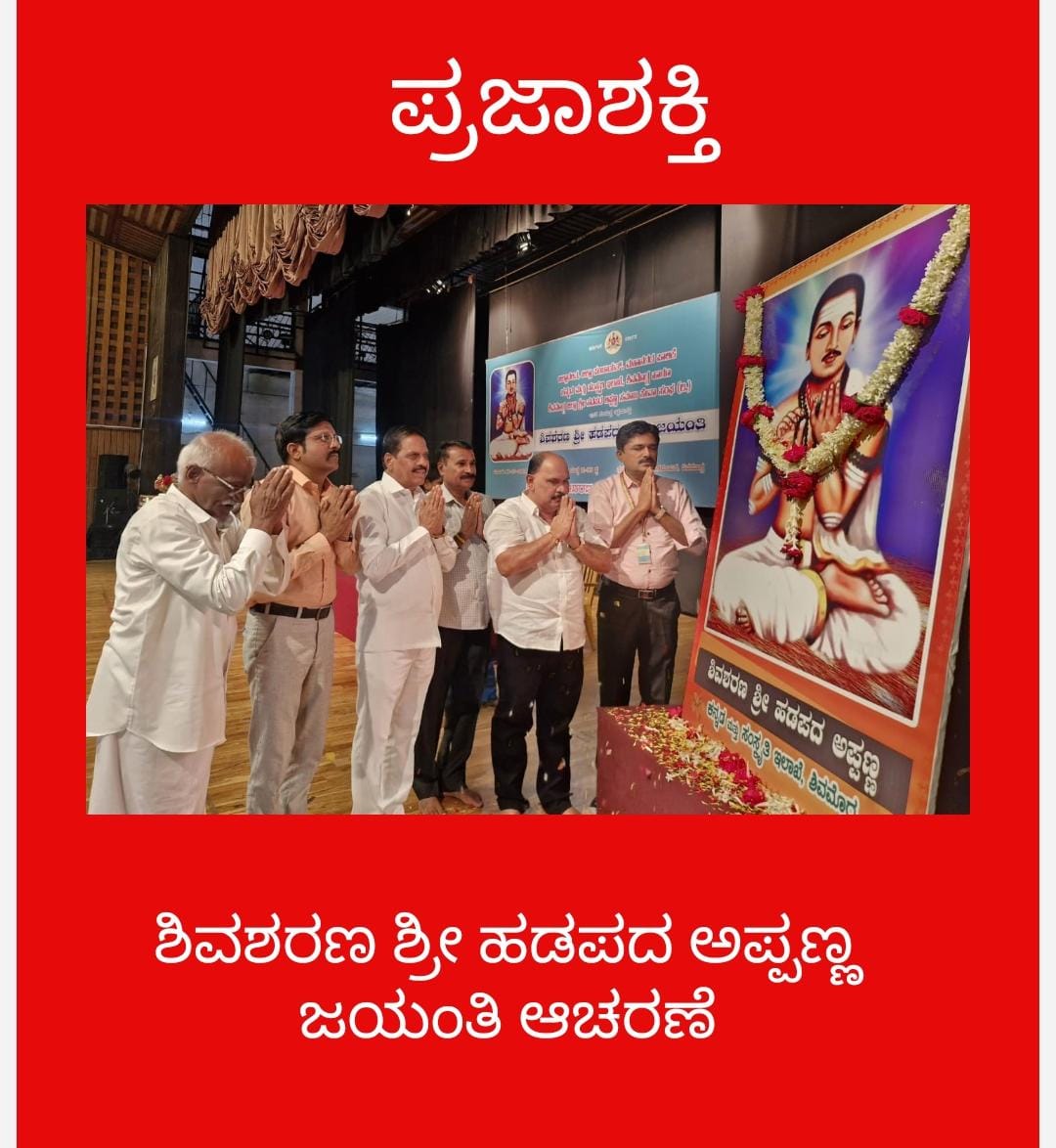 ಜಿಲ್ಲಾಡಳಿತ, ಜಿಲ್ಲಾ ಪಂಚಾಯತ್, ಮಹಾನಗರಪಾಲಿಕೆ, ಕನ್ನಡ ಮತ್ತು ಸಂಸ್ಕೃತಿ ಇಲಾಖೆ ಹಾಗೂ ಜಿಲ್ಲಾ ಶ್ರೀ ಹಡಪದ ಅಪ್ಪಣ್ಣ ಸಮಾಜ ಸೇವಾ ಸಂಘ ಇವರ ಸಂಯುಕ್ತಾಶ್ರಯದಲ್ಲಿ ನಗರದ ಕುವೆಂಪು ರಂಗಮAದಿರದಲ್ಲಿ ಆಯೋಜಿಸಿದ್ದ ಶಿವಶರಣ ಶ್ರೀ ಹಡಪದ ಅಪ್ಪಣ್ಣ ಜಯಂತಿ ಕಾರ್ಯಕ್ರಮದಲ್ಲಿ ಉಪನ್ಯಾಸ ನೀಡಿದ ಅವರು ಮಾತನಾಡಿದರು.