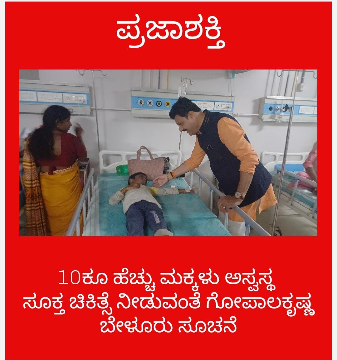 ಸುದ್ದಿ ತಿಳಿದು ಶಾಸಕರು ಮತ್ತು ಕರ್ನಾಟಕ ರಾಜ್ಯ ಅರಣ್ಯ ಕೈಗಾರಿಕಾ ನಿಗಮ ನಿಯಮಿತದ ಅಧ್ಯಕ್ಷರಾದ ಶ್ರೀ ಗೋಪಾಲಕೃಷ್ಣ ಬೇಳೂರು ರವರು ಮೆಗ್ಗಾನ್ ಆಸ್ಪತ್ರೆಗೆ ಭೇಟಿ ನೀಡಿ ಮಕ್ಕಳ ಆರೋಗ್ಯ ವಿಚಾರಿಸಿ ಅಸ್ವಸ್ಥ ಮಕ್ಕಳಿಗೆ ಸೂಕ್ತ ಚಿಕಿತ್ಸೆ ನೀಡುವಂತೆ ವೈದ್ಯಾಧಿಕಾರಿಗಳಿಗೆ ಸೂಚಿಸಿದರು.