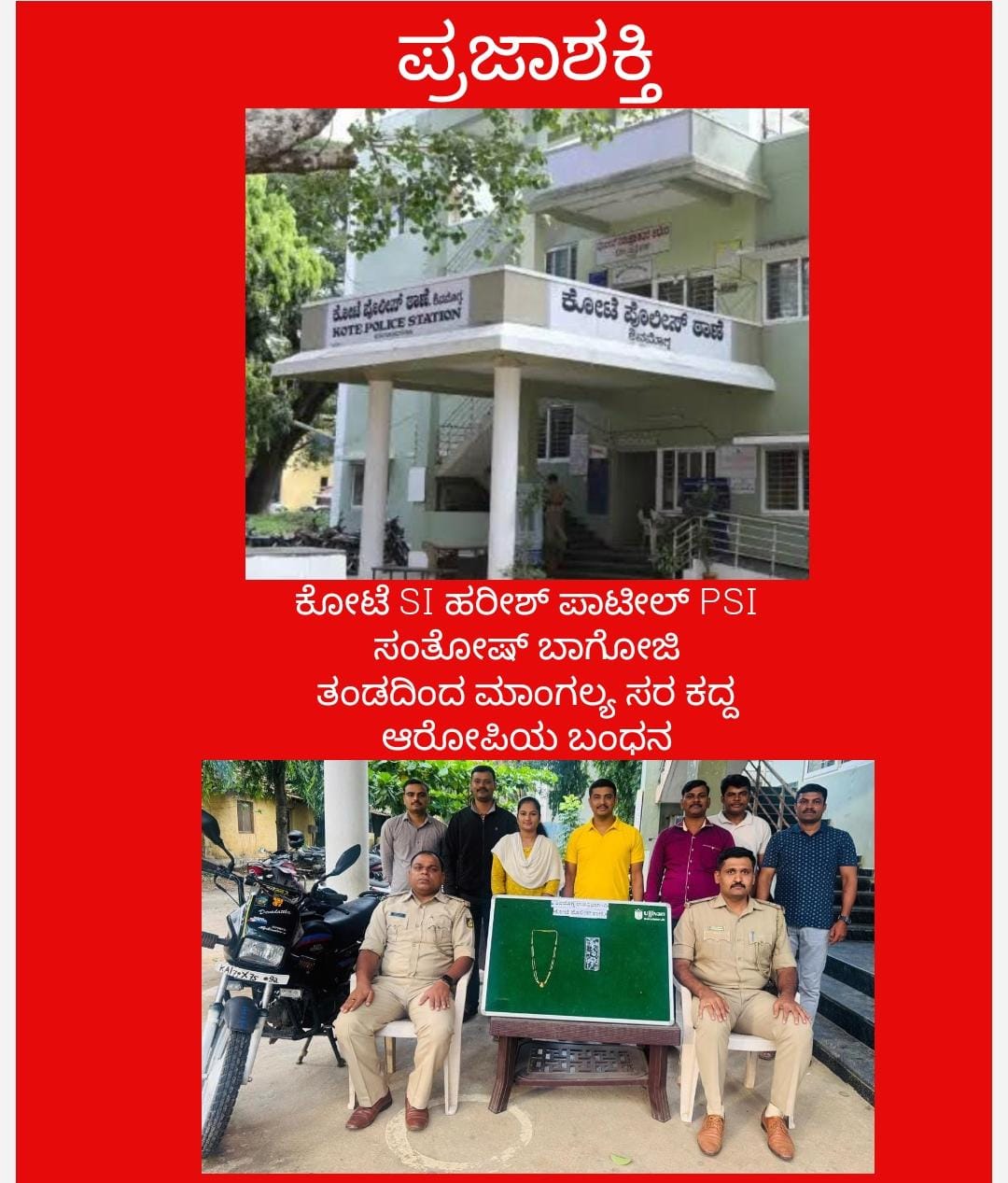 ಗಣಪತಿ ಲೇಔಟ್ ನಲ್ಲಿ ನಾಗರಾಜ್ ದಂಪರಿಗಳುವಾಗಿದ್ದು ಸೈಟ್ ಕೇಳುವ ನೆಪದಲ್ಲಿ ಮನೆಯ ಒಳಗೆ ನುಗ್ಗಿ ನಾಗರಾಜ್ ಅವರ ಹೆಂಡತಿಯ ಕುತ್ತಿಗೆಯಲ್ಲಿದ್ದ ಸುಮಾರು 40 ಗ್ರಾಂ 400 ಮಿಲಿ ತೂಕದ ಬಂಗಾರದ ಮಾಂಗಲ್ಯ ಸರವನ್ನು ಸುಲಿಗೆ ಮಾಡಿಕೊಂಡು ಹೋದ ಘಟನೆ ಕೋಟೆ ಪೊಲೀಸ್ ಠಾಣೆಯಲ್ಲಿ ಜುಲೈ 3 ರಂದು ದಾಖಲಾಗಿತ್ತು.