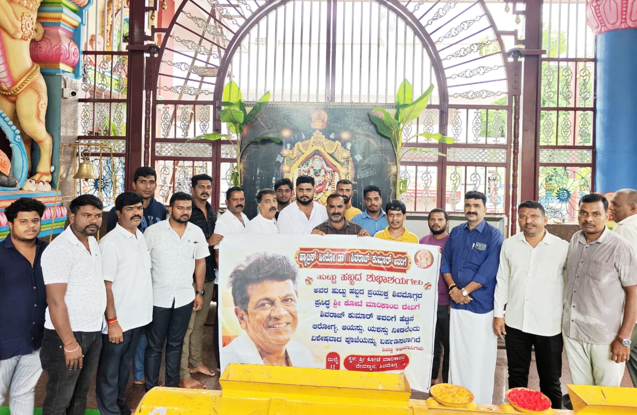 ಕರುನಾಡ ಚಕ್ರವರ್ತಿ, ಹ್ಯಾಟ್ರಿಕ್ ಹೀರೋ ಡಾ || ಶಿವರಾಜ್ ಕುಮಾರ್ ಅವರ ಹುಟ್ಟು ಹಬ್ಬದ ಪ್ರಯುಕ್ತ ಶಿವಮೊಗ್ಗದ ಪ್ರಸಿದ್ಧ ಶ್ರೀ ಕೋಟೆ ಮಾರಿಕಾಂಬ ದೇವಸ್ಥಾನದಲ್ಲಿ ಶಿವರಾಜ್ ಕುಮಾರ್ ಅವರಿಗೆ ಹೆಚ್ಚಿನ ಆರೋಗ್ಯ, ಆಯಸ್ಸು, ಯಶಸ್ಸು, ನೀಡಲೆಂದು ಗ್ರಾಮ ದೇವತೆ ಕೋಟೆ ಮಾರಿಕಾಂಬಾ ದೇವಿಗೆ ವಿಶೇಷವಾದ ಪೂಜೆ ಸಲ್ಲಿಸಿ ಸಿಹಿ ವಿತರಣೆ ಮಾಡಲಾಯಿತು.