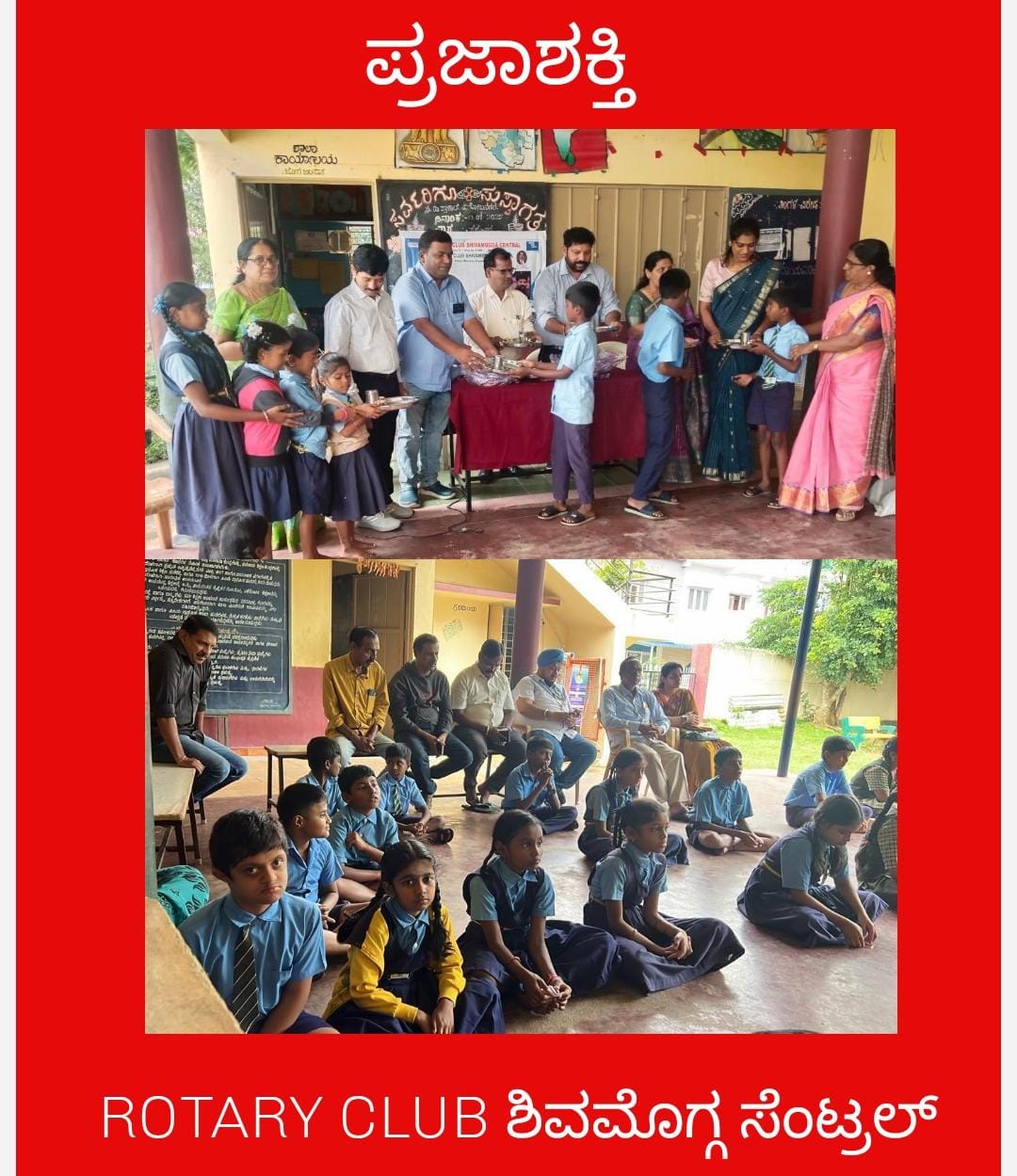 ರೋಟರಿ ಕ್ಲಬ್ ಶಿವಮೊಗ್ಗ ಸೆಂಟ್ರಲ್ ನೂತನವಾಗಿ ಅಧ್ಯಕ್ಷರಾದ ಬಸವರಾಜ್ ಕಾರ್ಯದರ್ಶಿ ಜಯಶೀಲ ಶೆಟ್ಟಿ ರವರು ಮೊದಲ ಬಾರಿಗೆ ಸರ್ಕಾರಿ ಶಾಲೆಗೆ ಮಕ್ಕಳಿಗೆ ಮುಖ್ಯ ಉಪಯೋಗಿಸುವ ವಸ್ತುಗಳು ನೀಡಿದರು.