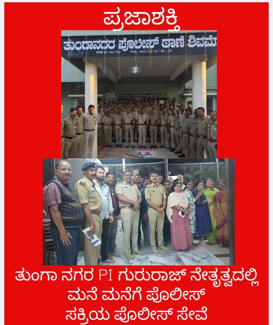 ತುಂಗಾನಗರ ಪೊಲೀಸ್ ಠಾಣೆ PI ಗುರುರಾಜ್ ನೇತೃತ್ವದಲ್ಲಿ ಮನೆ ಮನೆಗೆ ಪೊಲೀಸ್ ಸಕ್ರಿಯ ಪೊಲೀಸ್ ಸೇವೆಯನ್ನು ನಗರದ ವಿವೇಕಾನಂದ ಬಡಾವಣೆಯಲ್ಲಿ ಬಡಾವಣೆ ನಿವಾಸಿಗಳ ಸಮಸ್ಯೆ ಆಲಿಸುವ ಮೂಲಕ ಚಾಲನೆ ನೀಡಿದರು.