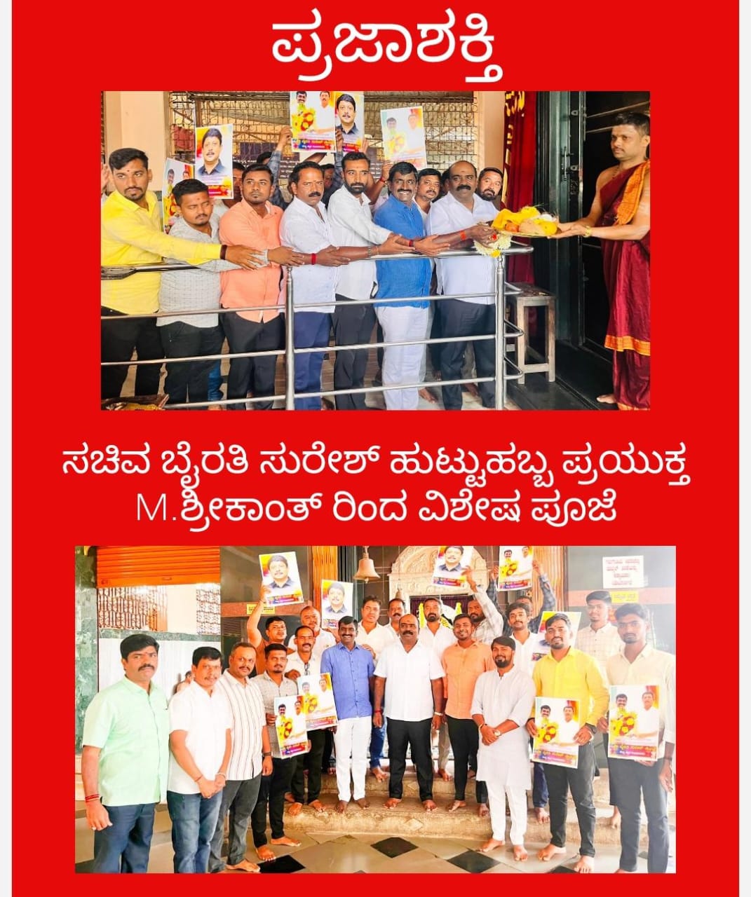 ನಗರಾಭಿವೃದ್ಧಿ ಸಚಿವರಾದ ಬೈರತಿ ಸುರೇಶ್ ರವರ ಹುಟ್ಟುಹಬ್ಬ- M. ಶ್ರೀಕಾಂತ್ ನೇತೃತ್ವದಲ್ಲಿ ಬಲಮುರಿ ಗಣಪತಿ ದೇವಾಲಯದಲ್ಲಿ ವಿಶೇಷ ಪೂಜೆ.