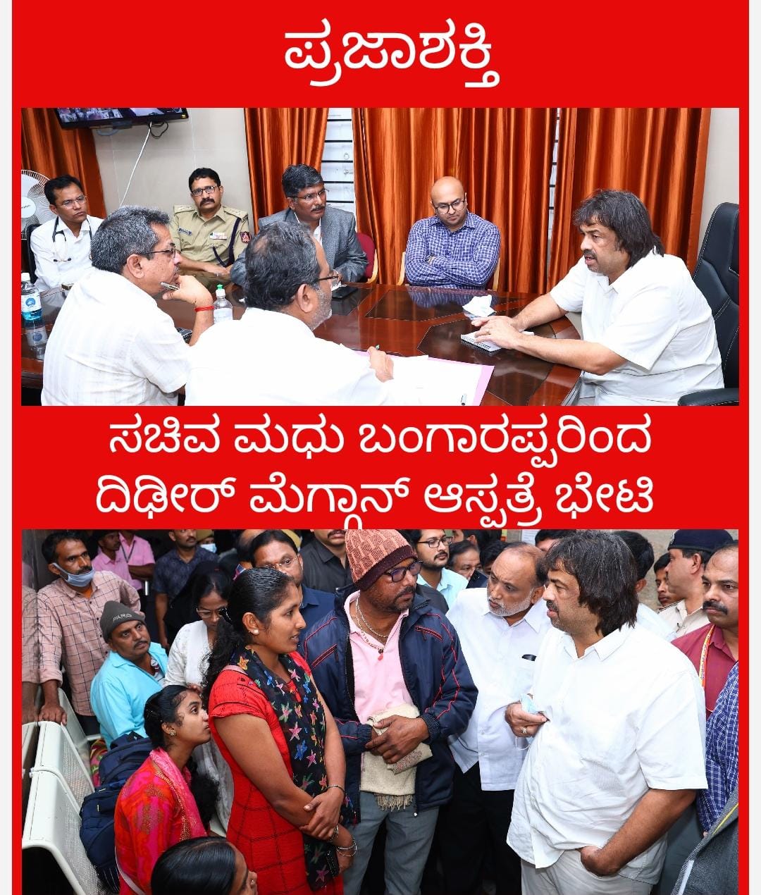 ಜಿಲ್ಲಾ ಉಸ್ತುವಾರಿ ಸಚಿವರಾದ ಮಧು ಬಂಗಾರಪ್ಪರವರು ಸೋಮವಾರ ಜಿಲ್ಲಾ ಮೆಗ್ಗಾನ್ ಬೋಧನಾ ಆಸ್ಪತ್ರೆಗೆ ದಿಢೀರ್ ಭೇಟಿ ನೀಡಿ ಪರಿವೀಕ್ಷಣೆ ನಡೆಸಿದರು.