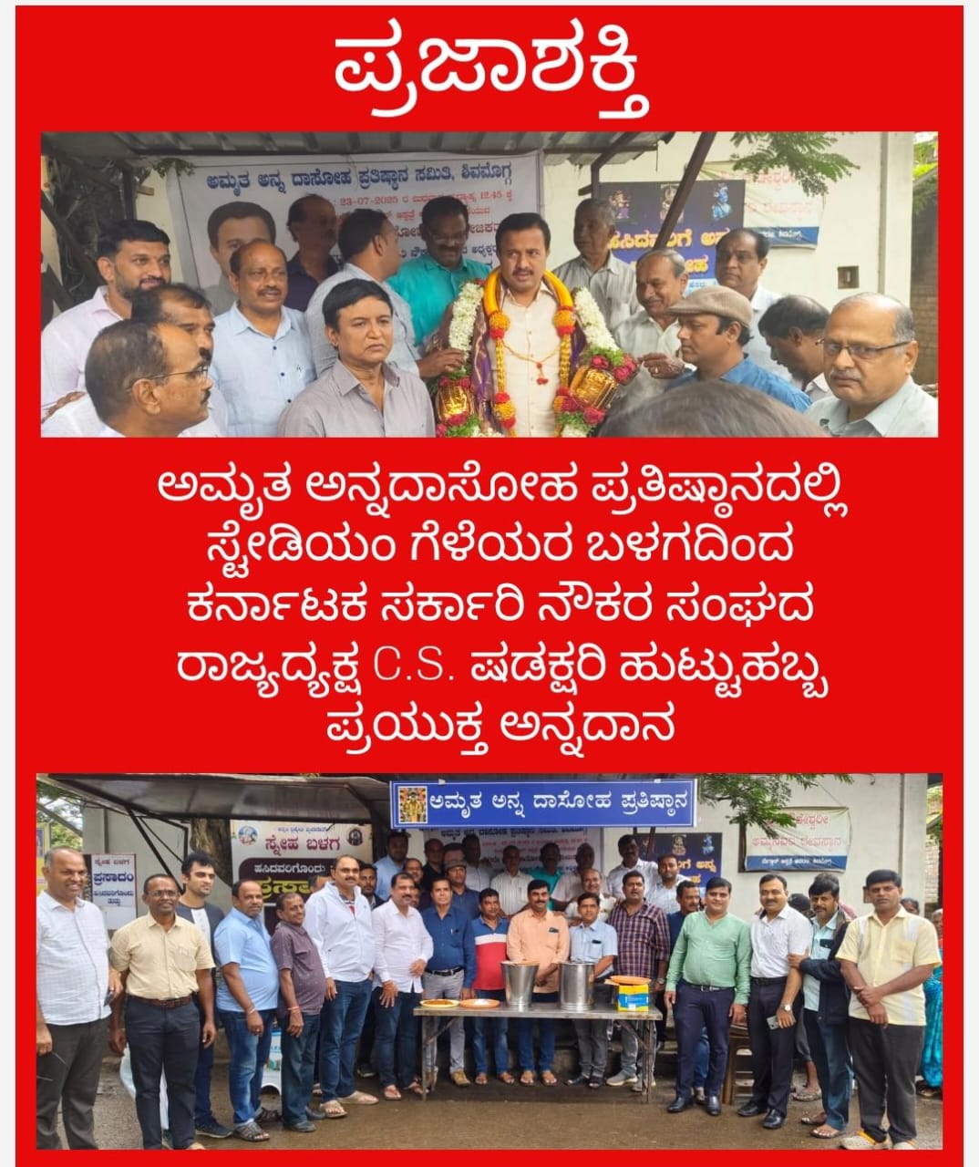 ಅಮೃತ ಅನ್ನದಾಸೋಹ ಪ್ರತಿಷ್ಠಾನದಲ್ಲಿ ಸ್ಟೇಡಿಯಂ ಗೆಳೆಯರ ಬಳಗ ವತಿಯಿಂದ ಕರ್ನಾಟಕ ರಾಜ್ಯ ಸರ್ಕಾರಿ ನೌಕರರ ಸಂಘದ ರಾಜ್ಯಾಧ್ಯಕ್ಷರಾದ ಷಡಕ್ಷರಿ ರವರ ಹುಟ್ಟು ಹಬ್ಬದ ಪ್ರಯುಕ್ತ ಅನ್ನದಾನ ಕಾರ್ಯಕ್ರಮ ನಡೆಯಿತು.