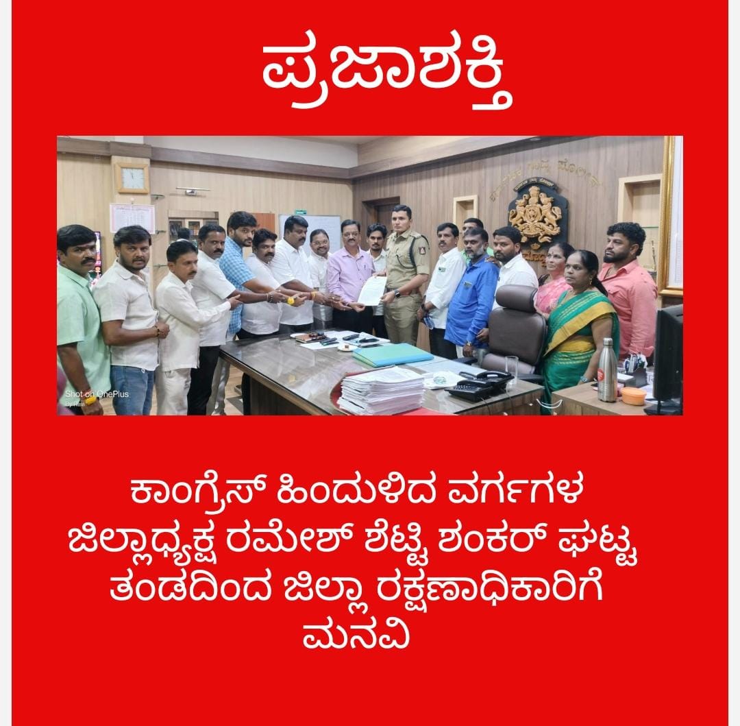 ಹೇಳಿಕೆಯನ್ನು ತಿರುಚಿದವರ ಮೇಲೆ ಕಾನೂನು ಕ್ರಮ ಕೈಗೊಳ್ಳಲು ಕಾಂಗ್ರೆಸ್ ಹಿಂದುಳಿದ ವರ್ಗಗಳ ಜಿಲ್ಲಾಧ್ಯಕ್ಷರಾದ ರಮೇಶ್ ಶೆಟ್ಟಿ ಶಂಕರ್ ಘಟ್ಟ ರವರ ನೇತೃತ್ವದಲ್ಲಿ ಜಿಲ್ಲಾ ರಕ್ಷಣಾಧಿಕಾರಿಗೆ ಮನವಿ ಸಲ್ಲಿಸಿದರು.
