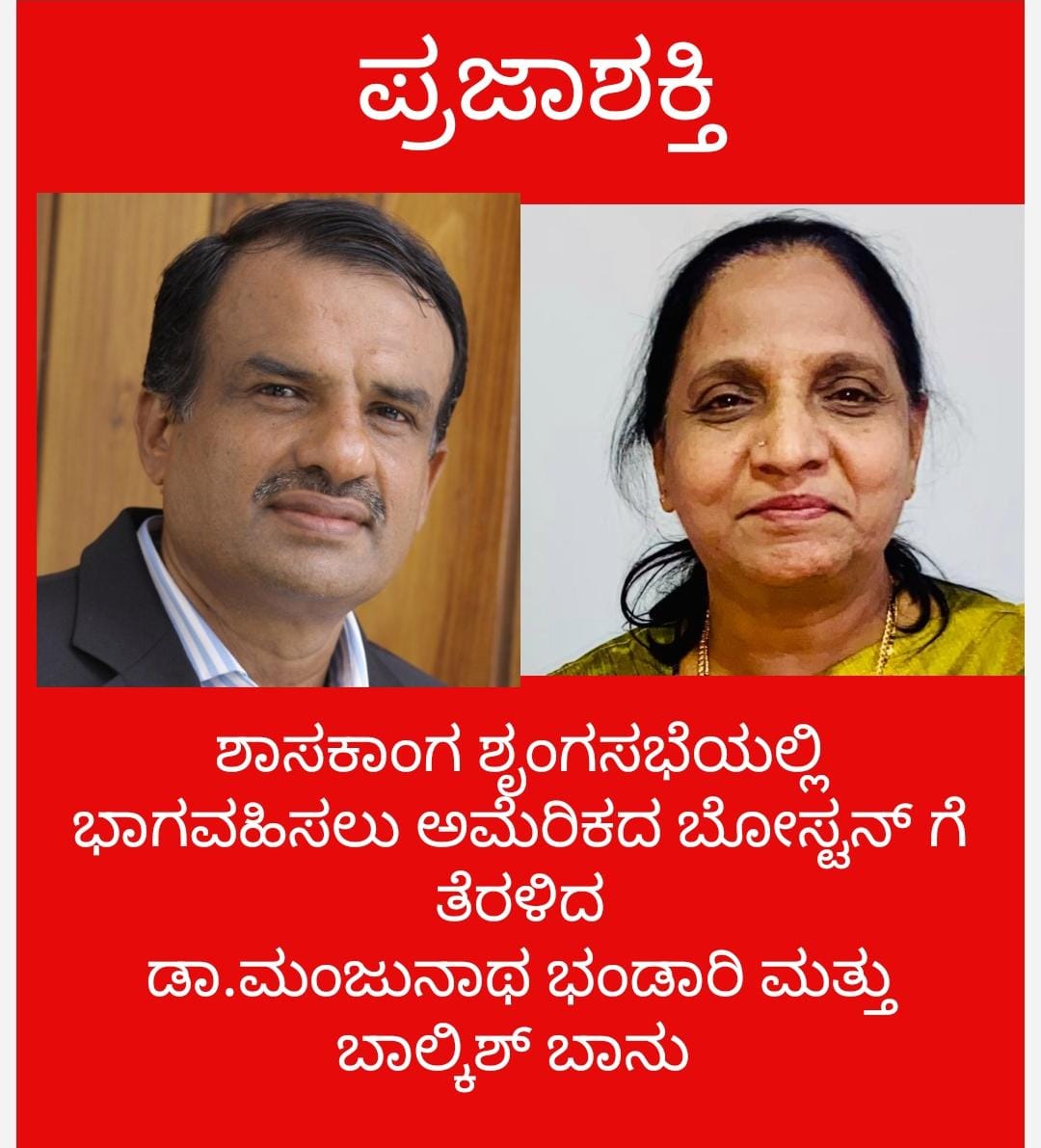 ಆಗಸ್ಟ್ 4 ರಿಂದ 6 ರವರೆಗೆ ಅಮೆರಿಕಾದ ಬೋಸ್ಟನ್ ನಲ್ಲಿ ನ್ಯಾಷನಲ್ ಕಾನಫೆರೆನ್ಸ್ ಆಫ್ ಸ್ಟೇಟ್ ಲೆಜಿಸ್ಲೇಟರ್ಸ್(ಓಅSಟ) ವತಿಯಿಂದ ನಡೆಯಲಿರುವ ಅಂತರರಾಷ್ಟ್ರೀಯ ಶಾಸಕ ಸಮ್ಮೇಳನದಲ್ಲಿ ಭಾಗವಹಿಸಲು ವಿಧಾನಪರಿಷತ್ ಸದಸ್ಯರಾದ ಡಾ.ಮಂಜುನಾಥ್ ಭಂಡಾರಿ ಹಾಗೂ ಬಲ್ಕೀಶ್ ಬಾನು ಸೇರಿದಂತೆ ಕರ್ನಾಟಕದ ಹಲವು ಶಾಸಕರುಗಳು ಭಾಗವಹಿಸಲು ಇಂದು ಅಮೆರಿಕಕ್ಕೆ ತೆರಳಿದ್ದಾರೆ.