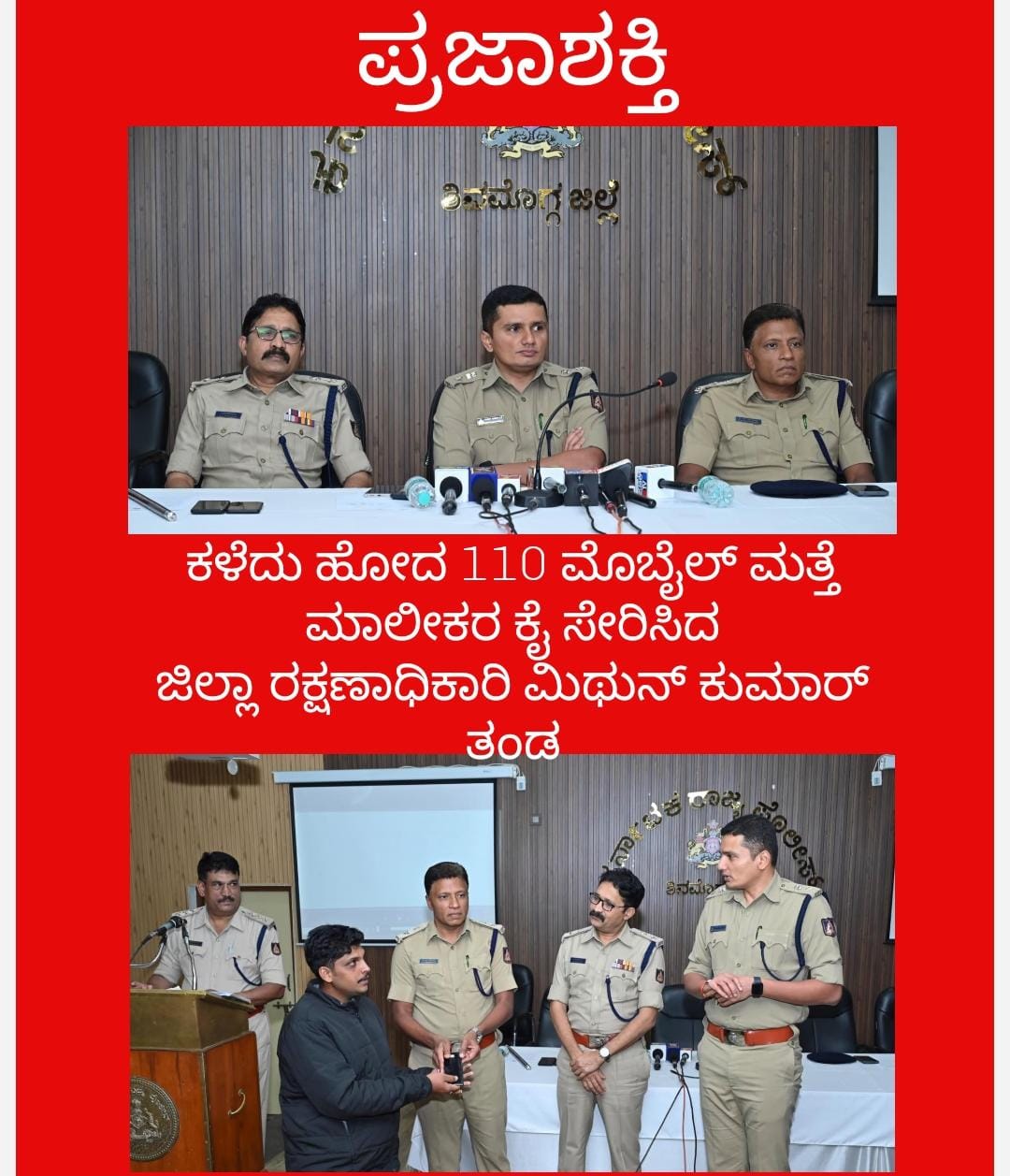 ಕಳೆದು ಹೋದ 110 ಮೊಬೈಲ್ ಗಳನ್ನು ಮಾಲೀಕರಿಗೆ ಹಿಂತಿರುಗಿಸುವ ಮೂಲಕ ಜಿಲ್ಲಾ ರಕ್ಷಣಾಧಿಕಾರಿ ಮಿಥುನ್ ಕುಮಾರ್ ತಂಡ ಯಶಸ್ವಿಯಾಗಿದೆ.CEIR ಪೋರ್ಟಲ್ ಬಳಸಿ ಕಳೆದು ಹೋದ ಮೊಬೈಲ್ ಫೋನ್ ಗಳನ್ನ ಪೊಲೀಸರು ಪತ್ತೆ ಮಾಡಿದ್ದಾರೆ. ಒಟ್ಟು ಪೋರ್ಟಲ್ ಗಳಲ್ಲಿ 1 ಸಾವಿರ ಮೊಬೈಲ್ ಕಳವು ಪ್ರಕರಣ ಪೋರ್ಟಲ್ ನಲ್ಲಿ ದಾಖಲಾಗಿದ್ದು ಅದರಲ್ಲಿ 110 ಮೊಬೈಲ್ ಗಳನ್ನ ಇಲಾಖೆ ಹುಡುಕಿ ಕೊಟ್ಟಿದ್ದಾರೆ.