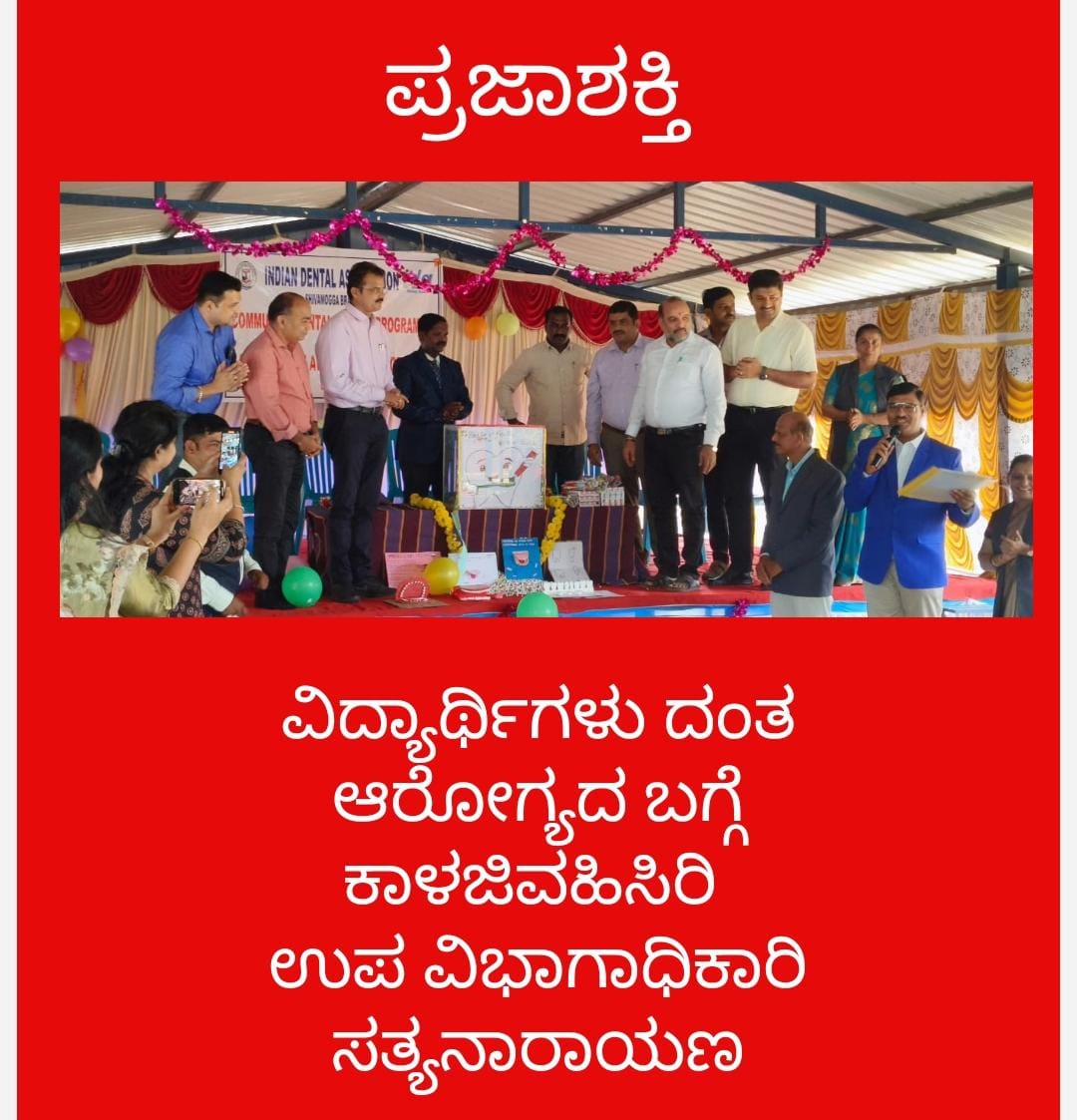 ವಿದ್ಯಾರ್ಥಿಗಳು ತಮ್ಮ ಆರೋಗ್ಯದ ಬಗ್ಗೆ ಚಿಕ್ಕ ವಯಸ್ಸಿನಿಂದೆಲೇ ಹೆಚ್ಚು ಗಮನ ಹರಿಸಬೇಕು. ಅದರಲ್ಲೂ ಬಾಯಿ ಮತ್ತು ಹಲ್ಲಿನ ಆರೋಗ್ಯದ ಬಗ್ಗೆ ಹೆಚ್ಚು ಒತ್ತು ನೀಡಬೇಕು ಎಂದು ಶಿವಮೊಗ್ಗ ಉಪ ವಿಭಾಗಾಧಿಕಾರಿಗಳಾದ ಸತ್ಯನಾರಾಯಣ ತಿಳಿಸಿದರು.