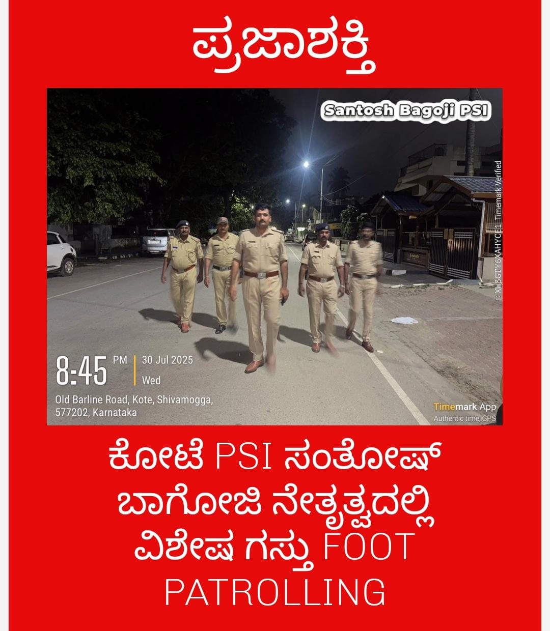 ಶಿವಮೊಗ್ಗ ಜಿಲ್ಲೆಯಲ್ಲಿ ಕಾನೂನು ಸುವ್ಯವಸ್ಥೆ ಕಾಪಾಡುವ ನಿಟ್ಟಿನಲ್ಲಿ ಹಾಗೂ ಮೂಂಜಾಗ್ರತಾ ಕ್ರಮವಾಗಿ 30ರಂದು ಶಿವಮೊಗ್ಗ ಜಿಲ್ಲೆಯಾದ್ಯಂತ ಆಯಾ ಪೊಲೀಸ್ ಉಪಾಧೀಕ್ಷಕರುಗಳ ನೇತೃತ್ವದಲ್ಲಿ ಪೊಲೀಸ್ ನಿರೀಕ್ಷಕರು, ಪೋಲಿಸ್ ಉಪನಿರೀಕ್ಷಕರು ಮತ್ತು ಸಿಬ್ಬಂದಿಗಳ ತಂಡಗಳು Area Domination ಮತ್ತು ಸೂಕ್ಷ್ಮ ಪ್ರದೇಶಗಳಲ್ಲಿ ಕಾಲ್ನಡಿಗೆ ವಿಶೇಷ ಗಸ್ತು (Foot Patrolling) ಮಾಡಿ Public Nuisance ಮಾಡಿದ ಮತ್ತು ಅನುಮಾನಸ್ಪಾದ ವ್ಯಕ್ತಿಗಳ ವಿರುದ್ದ 38 ಲಘು ಪ್ರಕರಣ ಮತ್ತು COTPA ಕಾಯ್ದೆಯಡಿ 05 ಪ್ರಕರಣಗಳನ್ನು ದಾಖಲಿಸಲಾಗಿರುತ್ತದೆ