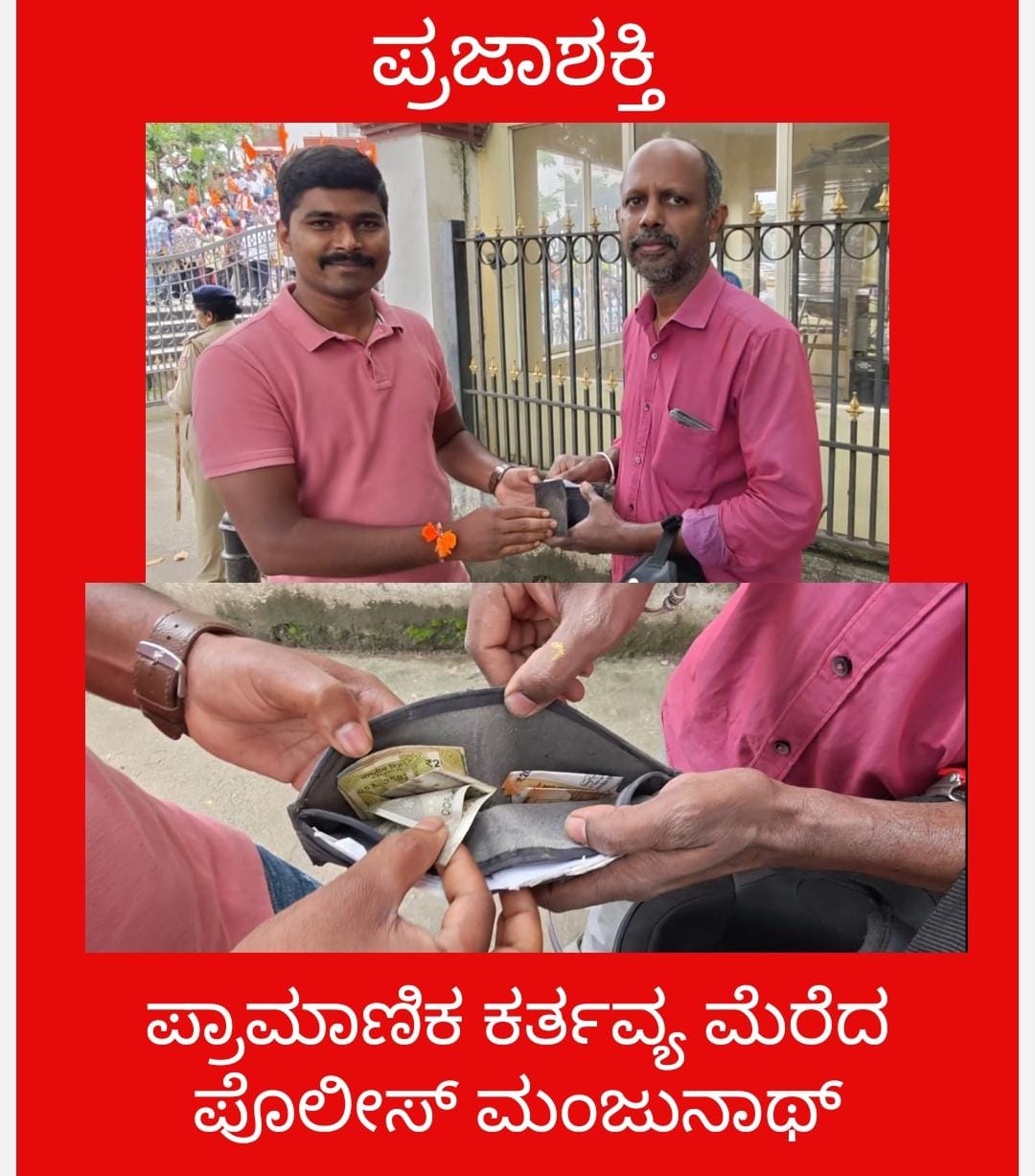 ಕೋಟೆ ಪೊಲೀಸ್ ಠಾಣೆಯ ಕಾನ್ಸ್ ಟೇಬಲ್ ಮಂಜುನಾಥ್ ಸಿ ರವರು ಪ್ರಾಮಾಣಿಕೆ ಕೆಲಸ ಮಾಡಿ ಕರ್ತವ್ಯ ಮೆರೆದಿದ್ದಾರೆ.