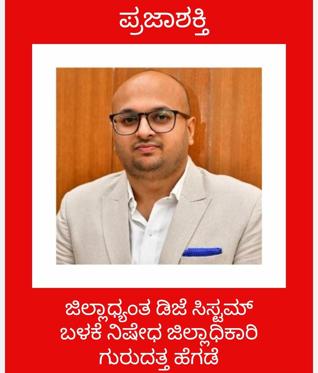 ಗಣೇಶ ಹಬ್ಬ ಮತ್ತು ಈದ್ ಮಿಲಾದ್ ಹಬ್ಬದ ಆಚರಣೆ ಪೂರ್ಣಗೊಳ್ಳುವವರೆಗೆ ಮುಂಜಾಗ್ರತಾ ಕ್ರಮವಾಗಿ ಸಾರ್ವಜನಿಕ ಶಾಂತಿ ಮತ್ತು ಸುವ್ಯವಸ್ಥೆ ಕಾಪಾಡುವ ಹಿತದೃಷ್ಟಿಯಿಂದ ಜಿಲ್ಲೆಯಾದ್ಯಂತ ದಿ: 27-08-202025 ರಿಂದ 15-09-2025 ರವರೆಗೆ ಡಿಜೆ ಸಿಸ್ಟಂ ಬಳಕೆಯನ್ನು ನಿಷೇಧಗೊಳಿಸಿ ಜಿಲ್ಲಾಧಿಕಾರಿಗಳಾದ ಗುರುದತ್ತ ಹೆಗಡೆ ಆದೇಶಿಸಿರುತ್ತಾರೆ.