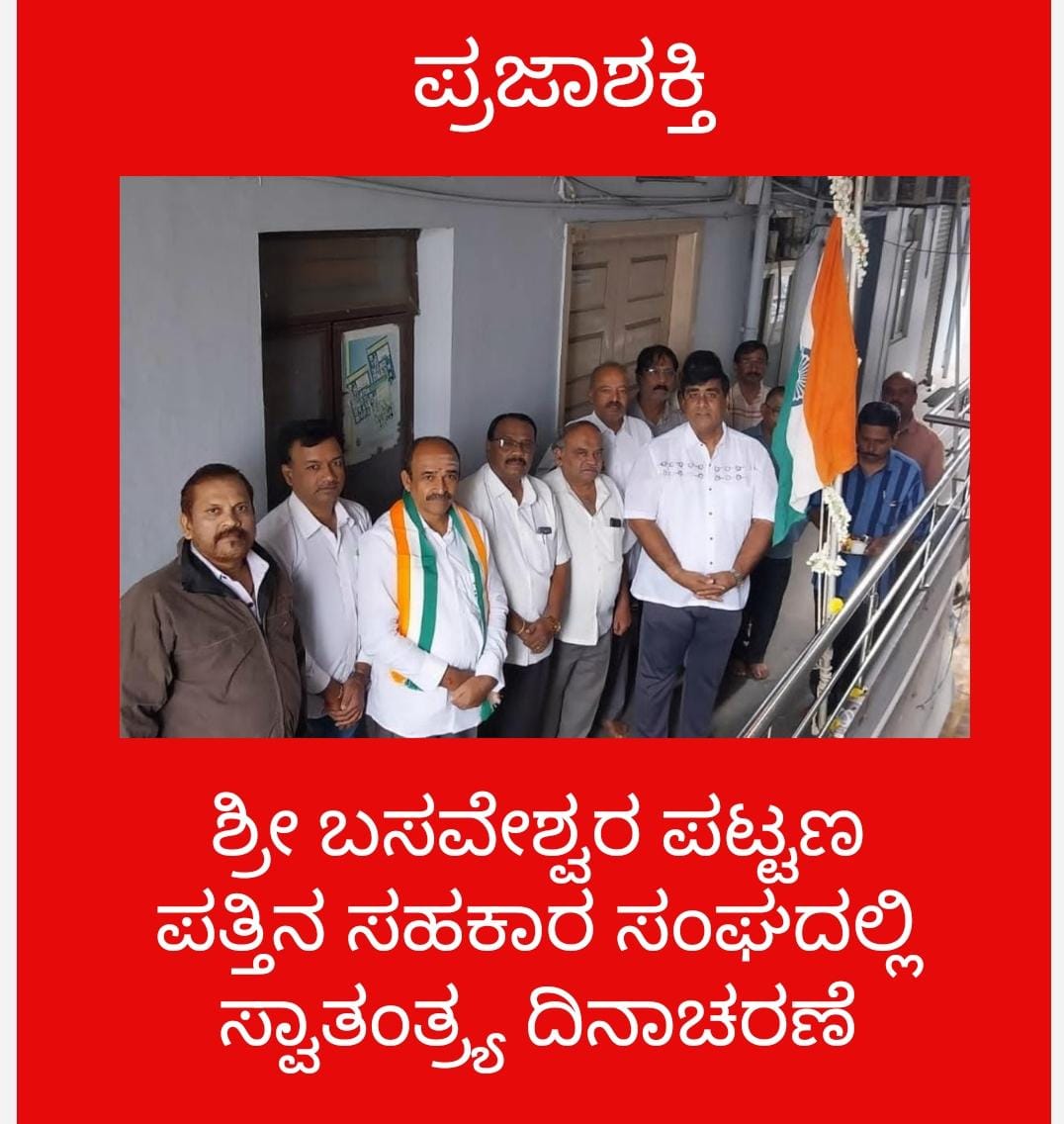ಶ್ರೀ ಬಸವೇಶ್ವರ ಸ್ವಾಮಿ ಪಟ್ಟಣ ಪತ್ತಿನ ಸಹಕಾರ ಸಂಘ ಬಸವ ಸದನ, ನೆಹರೂ ರಸ್ತೆ ಶಿವಮೊಗ್ಗ, ಕಚೇರಿ ಆವರಣದಲ್ಲಿ ಸಂಘದ ಅಧ್ಯಕ್ಷರಾದ ಶ್ರೀ ಬಳ್ಳೆಕೆರೆ ಸಂತೋಷ್ ರವರಿಂದ 79 ನೇ ಸ್ವಾತಂತ್ರ್ಯದಿನಾಚರಣೆಯ ಧ್ವಜಾರೋಹಣವನ್ನು ನೆರವೇರಿಸಲಾಯಿತು.