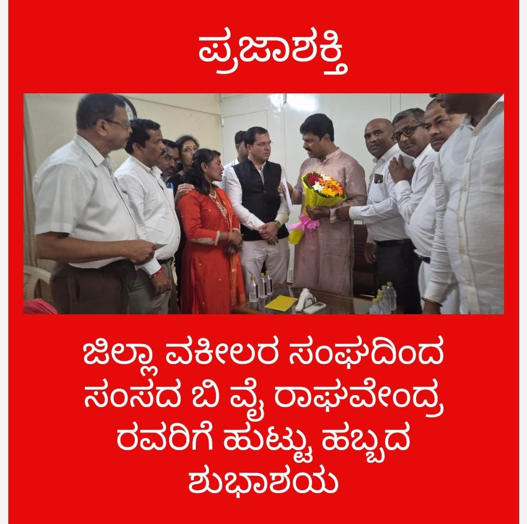 ಶಿವಮೊಗ್ಗ ವಕೀಲರ ಸಂಘದಿಂದ ಸಂಸದರಾದ ಶ್ರೀ ಬಿ ವೈ ರಾಘವೇಂದ್ರ ಅವರಿಗೆ ಹುಟ್ಟು ಹಬ್ಬದ ಶುಭಾಶಯ ಕೋರಿದರು.