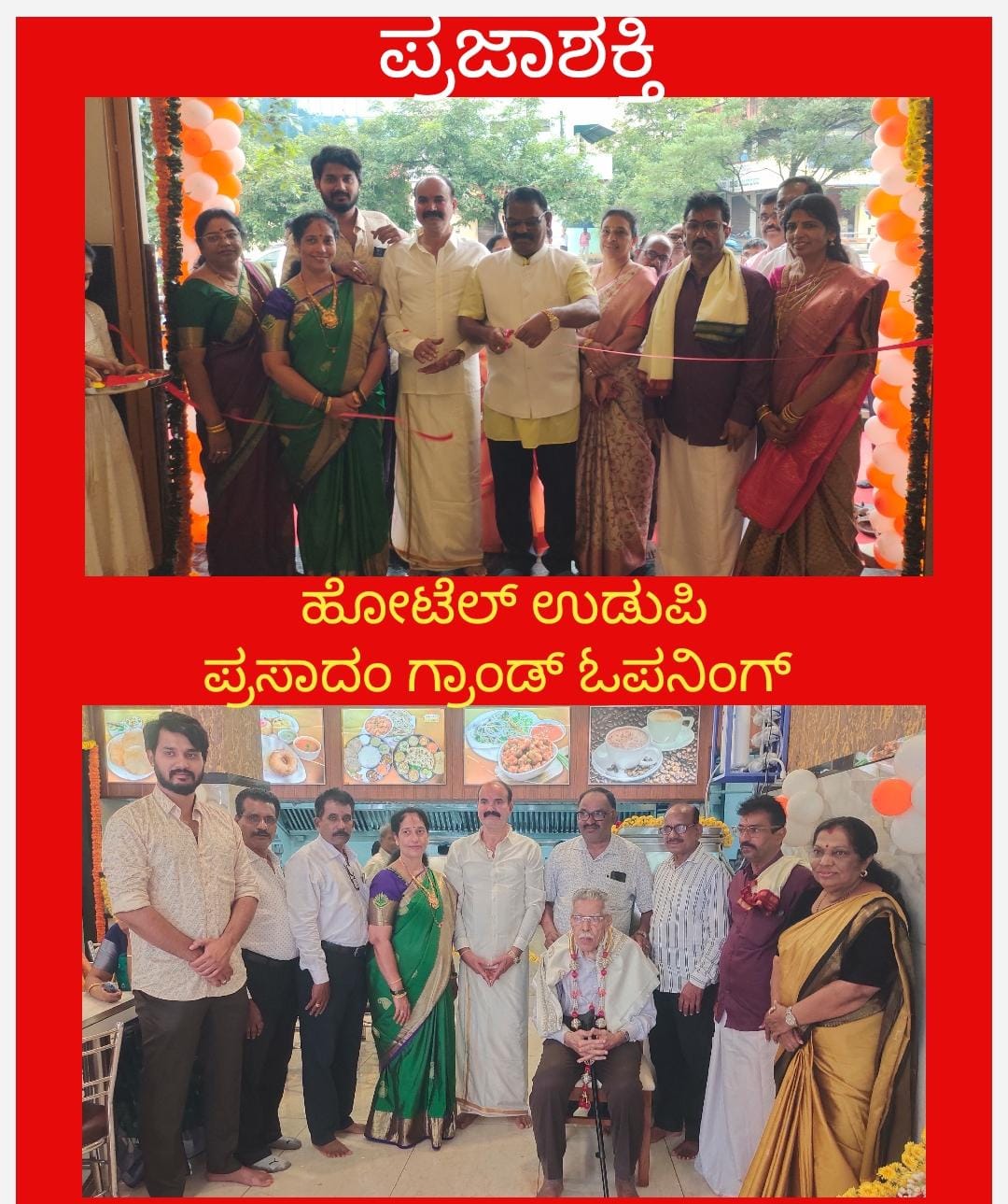 ಶಿವಮೊಗ್ಗದ ವಿನೋಬನಗರ ಸೂಡ ಕಚೇರಿ ಎದುರು ನೂತನವಾಗಿ ಹೋಟೆಲ್ ಉಡುಪಿ ಪ್ರಸಾದಂ ಪ್ರಾರಂಭವಾಯಿತು.