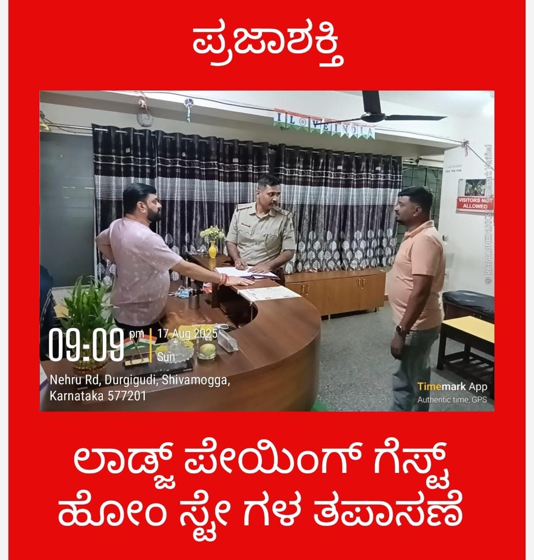 ಶ್ರೀ ಮಿಥುನ್ ಕುಮಾರ್ ಜಿ. ಕೆ, ಪೊಲೀಸ್ ಅಧೀಕ್ಷಕರು ಶಿವಮೊಗ್ಗ ಜಿಲ್ಲೆ, ಶ್ರೀ ಕಾರಿಯಪ್ಪ ಎ ಜಿ ಹೆಚ್ಚುವರಿ ಪೊಲೀಸ್ ಅಧೀಕ್ಷಕರು-1 ಮತ್ತು ಶ್ರೀ ಎಸ್ ರಮೇಶ್ ಕುಮಾರ್, ಹೆಚ್ಚುವರಿ ಪೊಲೀಸ್ ಅಧೀಕ್ಷಕರು-2 ರವರ ಮಾರ್ಗದರ್ಶನದಲ್ಲಿ, ಜಿಲ್ಲೆಯ ವಿವಿಧ ಪೊಲೀಸ್ ಉಪ ವಿಭಾಗಗಳ ಪೊಲೀಸ್ ಉಪಾಧೀಕ್ಷಕರವರ ಮೇಲ್ವಿಚಾರಣೆಯಲ್ಲಿ, ಶಿವಮೊಗ್ಗ ಜಿಲ್ಲೆಯದ್ಯಂತ ಪೊಲೀಸ್ ನಿರೀಕ್ಷಕರು ಹಾಗೂ ಪೊಲೀಸ್ ಉಪ ನಿರೀಕ್ಷಕರವರ ನೇತೃತ್ವದಲ್ಲಿ ಸಿಬ್ಬಂದಿಗಳ ತಂಡವು ಆಯಾ ಪೊಲೀಸ್ ಠಾಣಾ ವ್ಯಾಪ್ತಿಗಳಲ್ಲಿರುವ ಲಾಡ್ಜ್, ಪೇಯಿಂಗ್ ಗೆಸ್ಟ್ ಮತ್ತು ಹೋಂ ಸ್ಟೇ ಗಳಿಗೆ ಭೇಟಿ ನೀಡಿ ತಪಾಸಣೆ ನಡೆಸಿರುತ್ತಾರೆ.