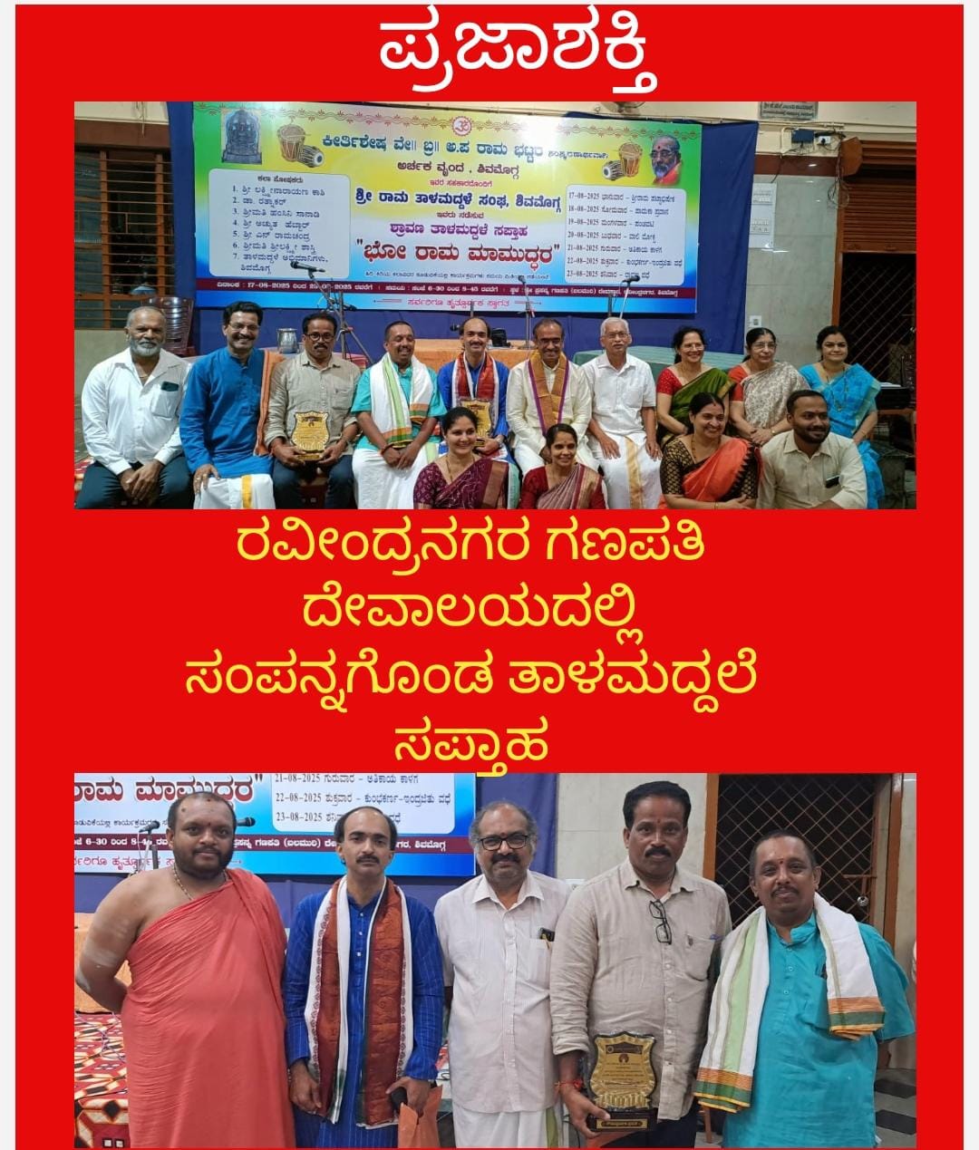 ಯಕ್ಷಗಾನದ ವಾಚಿಕ ವಿಭಾಗವಾದ ತಾಳಮದ್ದಳೆಯಲ್ಲಿ ಬಳಸುವ ಕನ್ನಡ ಭಾಷೆ ಶುದ್ಧ ಸ್ವರೂಪದಲ್ಲಿದ್ದು, ಅದು ಇತರ ಎಲ್ಲಾ ಕನ್ನಡದ ಕಲಾ ಪ್ರಕಾರಗಳಿಗೆ ಮಾದರಿ ಎನಿಸಿದೆ. ಈ ದಿಸೆಯಲ್ಲಿ ಶಿವಮೊಗ್ಗದ ಶ್ರೀರಾಮ ತಾಳಮದ್ದಳೆ ಸಂಘದವರು ಕೀರ್ತಿ ಶೇಷ ವೇದಬ್ರಹ್ಮ ಅ. ಪ. ರಾಮ ಭಟ್ಟರ ಸಂಸ್ಮರಣಾರ್ಥವಾಗಿ ಅರ್ಚಕ ವೃಂದ, ಶಿವಮೊಗ್ಗ ಇವರ ಸಹಕಾರದೊಂದಿಗೆ ಶ್ರೀ ಪ್ರಸನ್ನ ಗಣಪತಿ ದೇವಸ್ಥಾನ, ರವೀಂದ್ರನಗರ, ಶಿವಮೊಗ್ಗದಲ್ಲಿ ತಾಳಮದ್ದಲೆ ಸಪ್ತಾಹವನ್ನು ನಡೆಸಿಕೊಟ್ಟರು. ಈ ಕಾರ್ಯಕ್ರಮ ವಿಭಿನ್ನ ಸ್ವರೂಪದಿಂದ ಕಲಾಭಿಮಾನಿಗಳ ಮನಸೂರೆಗೊಂಡಿತು.
