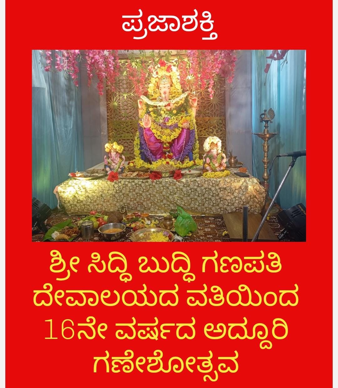 ಶ್ರೀ ಸಿದ್ಧಿ ಬುದ್ಧಿ ಮಹಾಗಣಪತಿ ದೇವಾಲಯದ ವತಿಯಿಂದ ಗಣಪತಿ ಪ್ರತಿಷ್ಠಾಪಿಸಲಾಯಿತು.ಪ್ರತಿ ವರ್ಷದಂತೆ ಈ ವರ್ಷವೂ ಸಹ ಅದ್ದೂರಿಯಾಗಿ 16ನೇ ವರ್ಷದ ಗಣೇಶನನ್ನು ಪ್ರತಿಷ್ಠಾಪಿಸಲಾಯಿತು.