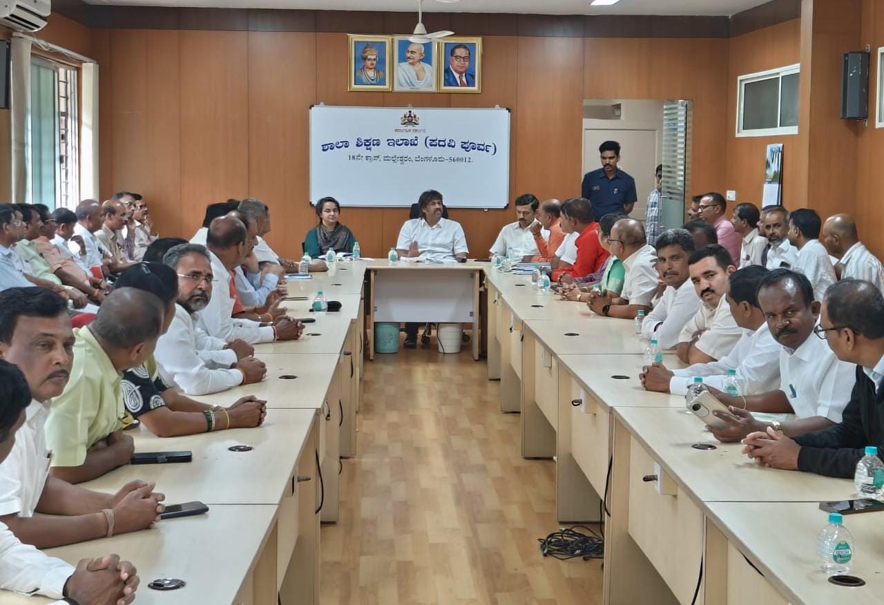 ಶಿಕ್ಷಣ ಮತ್ತು ಸಾಕ್ಷರತಾ ಸಚಿವರಾದ ಶ್ರೀ ಮಧು ಬಂಗಾರಪ್ಪ ನವರು ಕರ್ನಾಟಕ ರಾಜ್ಯ ಪ್ರಾಥಮಿಕ ಶಾಲಾ ಶಿಕ್ಷಕರ ಸಂಘದೊಂದಿಗೆ ಇಂದು ಬೆಂಗಳೂರಿನ ಮಲ್ಲೇಶ್ವರದ ಶಾಲಾ ಶಿಕ್ಷಣ ಇಲಾಖೆ (ಪದವಿ ಪೂರ್ವ) ಕಚೇರಿಯಲ್ಲಿ ಸಭೆ ನಡೆಸಿದರು.