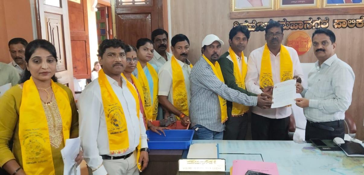 ರಾಜ್ಯ ಅಸಂಘಟಿತ ಕಾರ್ಮಿಕರ ಶಿವಮೊಗ್ಗ ಮಹಾನಗರ ಸಮಿತಿಯ ವತಿಯಿಂದ ಕಾರ್ಮಿಕರ ದಸರಾ ಉತ್ಸವವನ್ನು ಆಚರಿಸಲು ಒತ್ತಾಯಿಸಿ ಶಿವಮೊಗ್ಗ ಮಹಾನಗರ ಪಾಲಿಕೆ ಆಯುಕ್ತರಾದ ಮಾಯಣ್ಣ ಗೌಡರಿಗೆ ನವರಿಗೆ ಮನವಿ ಸಲ್ಲಿಸಿದರು.