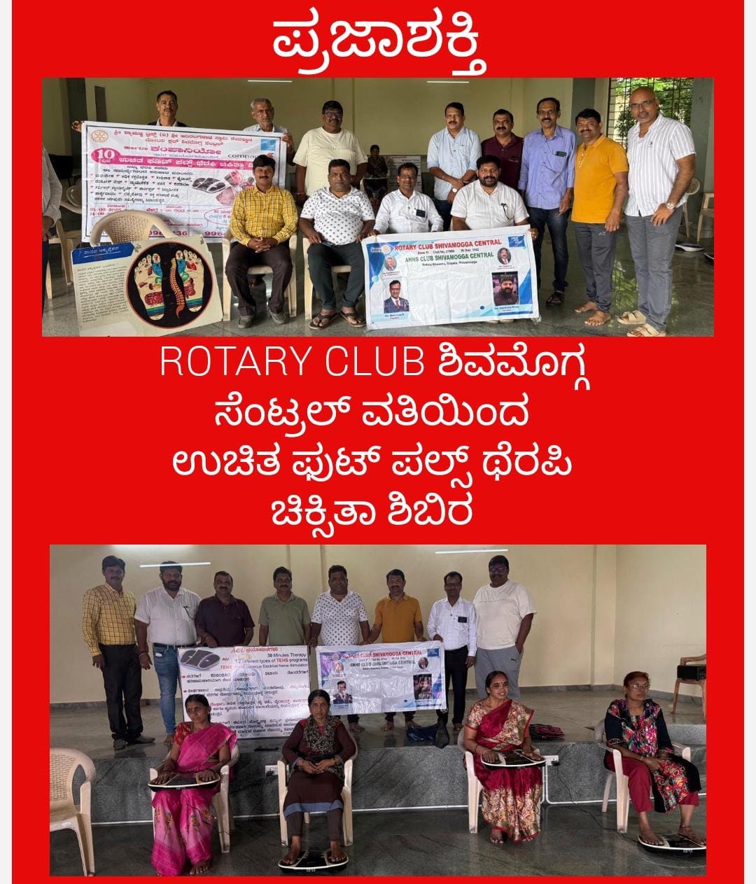 ರೋಟರಿ ಕ್ಲಬ್ ಶಿವಮೊಗ್ಗ ಸೆಂಟ್ರಲ್ ಮತ್ತು ಶಾಮಣ್ಣ ಟ್ರಸ್ಟ್ (ರೀ) ಶ್ರೀ ಆದಿ ರಂಗನಾಥ ಸ್ವಾಮಿ ದೇವಸ್ಥಾನ ಹಾಗೂ ಕಂಪಾನಿಯೋ ಇವರ ಸಹಯೋಗದಲ್ಲಿ 12 ದಿನಗಳ ಉಚಿತ ಫುಟ್ ಪಲ್ಸ್ ತೆರಫಿ ಚಿಕಿತ್ಸಾ ಶಿಬಿರ ಕಾರ್ಯಕ್ರಮ ಉದ್ಘಾಟನೆಯಾಯಿತು.