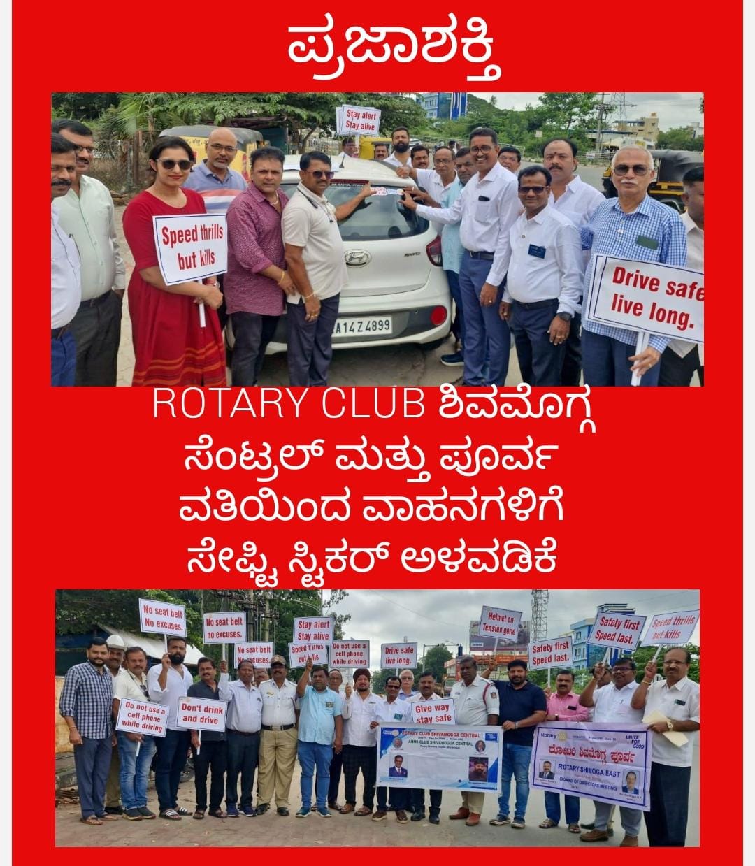 ನಗರದ ಆಲ್ಕೋಳ ಸರ್ಕಲ್ ನಲ್ಲಿ ರೋಡ್ ಸೇಫ್ಟಿ ವಿಷಯಕ್ಕೆ ಸಂಬಂಧಿಸಿದಂತೆ ಡಿಸ್ಟಿಕ್ ಪಬ್ಲಿಕ್ ಇಮೇಜ್ ಚೇರ್ಮನ್ ರೋಟೋರಿಯನ್ ಸೌಮ್ಯಮಣಿ ಅವರ ಆಶಯದಂತೆ ರೋಡ್ ಸೇಫ್ಟಿ ಸ್ಟಿಕರ್ ಗಳನ್ನ ಕಾರು, ಆಟೋ ಗಳಿಗೆ ಅಂಟಿಸಿದರು.ಪಬ್ಲಿಕ್ ಇಮೇಜ್ ಮತ್ತು ಪಬ್ಲಿಕ್ ಅವರ್ನೆಸ್ಸಿಗೆ ಸಂಬಂಧಿಸಿದಂತೆ ಕಾರ್ಯಕ್ರಮ ರೋಟರಿ ಕ್ಲಬ್ ಶಿವಮೊಗ್ಗ ಸೆಂಟ್ರಲ್ ಹಾಗೂ ರೋಟರಿ ಈಸ್ಟ್ ವತಿಯಿಂದ ನಡೆಯಿತು.