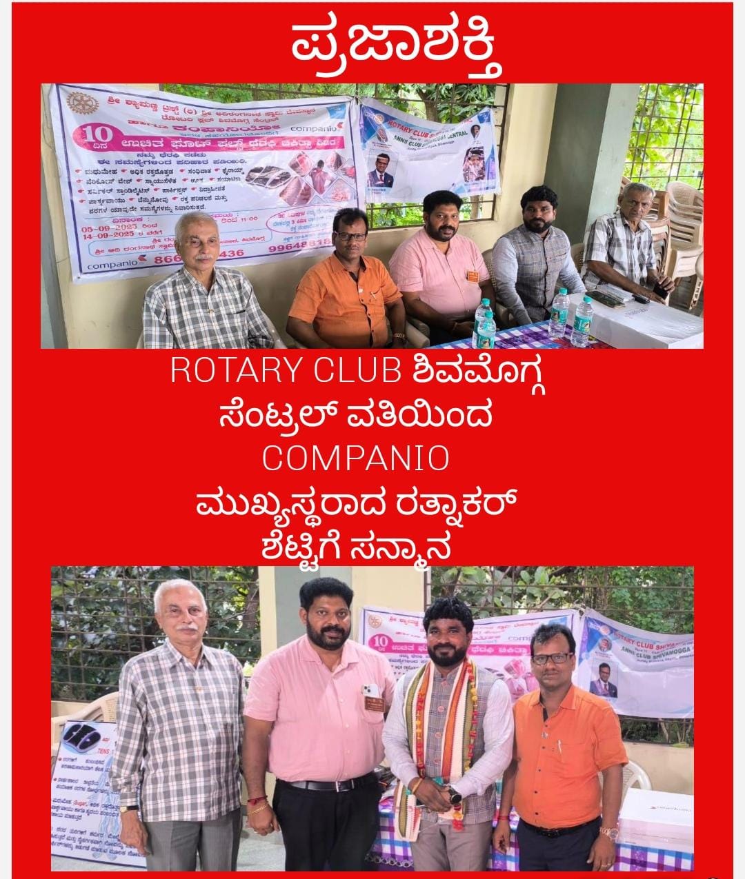 ರೋಟರಿ ಕ್ಲಬ್ ಶಿವಮೊಗ್ಗ ಸೆಂಟ್ರಲ್ ಮತ್ತು ಶಾಮಣ್ಣ ಟ್ರಸ್ಟ್( ರಿ) ಕಂಪಾನಿಯೋ ಶಿವಮೊಗ್ಗ ಇವರ ಸಂಯುಕ್ತ ಆಶ್ರಯದಲ್ಲಿ ನಡೆದ ಉಚಿತ ಆರೋಗ್ಯ ಶಿಬಿರದ ಸಮರೋಪ ಸಮಾರಂಭ 10ರಂದು ಬುಧವಾರ ಸಂಜೆ 5 ಗಂಟೆಗೆ ಶ್ರೀರಂಗ ಸಭಾಭವನ ಶ್ರೀ ಆದಿರಂಗನಾಥ ದೇವಸ್ಥಾನ ಗೋಪಾಲದಲ್ಲಿ ಜರಗಿತು.