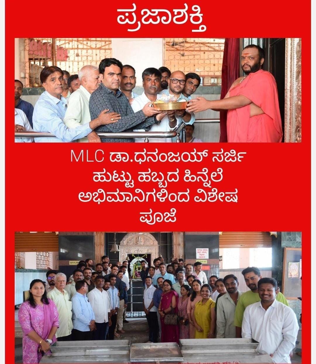 ಧನಂಜಯ ಸರ್ಜಿ ಅವರ ಅಭಿಮಾನಿಗಳ ಬಳಗದ ವತಿಯಿಂದ ಡಾ.ಧನಂಜಯ ಸರ್ಜಿ ಅವರ ಜನ್ಮದಿನದ ಪ್ರಯುಕ್ತ ನಗರದ ರವೀಂದ್ರನಗರ ಗಣಪತಿ ದೇವಸ್ಥಾನದಲ್ಲಿ ಸರ್ವ ಸೇವಾ ವಿಶೇಷ ಪೂಜೆಯನ್ನು ಸಲ್ಲಿಸಲಾಯಿತು.
