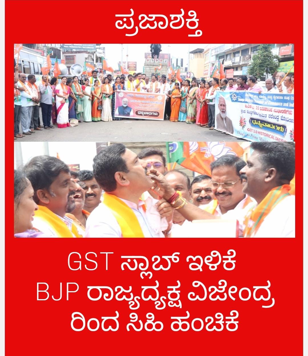 ದೇಶದಲ್ಲಿ GST 2.0 ಐತಿಹಾಸಿಕ ಸುಧಾರಣೆ ಮಾಡಿದ ಪ್ರಧಾನಿ ಮೋದಿಗೆ ನಗರದ ಶಿವಪ್ಪ ನಾಯಕ ವೃತ್ತದಲ್ಲಿ ಜಿಲ್ಲಾ ಬಿಜೆಪಿ ವತಿಯಿಂದ ಧನ್ಯವಾದಗಳನ್ನ ತಿಳಿಸಿದರು.ಈ ವೇಳೆ ಜಿಲ್ಲಾ ವಾಣಿಜ್ಯ ಮತ್ತು ಕೈಗಾರಿಕೆ ಸಂಘ ಸಹ ಪಾಲ್ಗೊಂಡು ಅಭಿನಂದನೆ ತಿಳಿಸಿದರು.