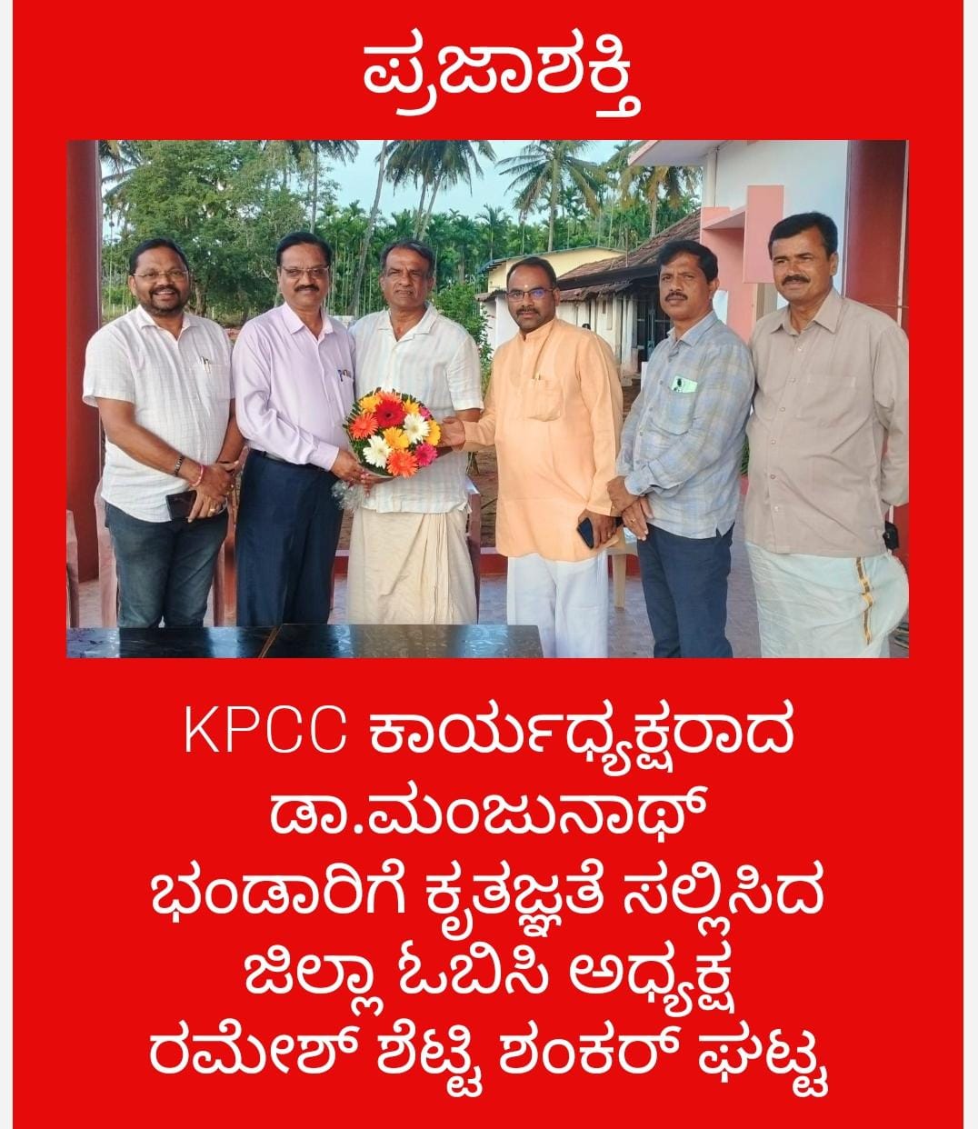 - ಕೆಪಿಸಿಸಿ ಕಾರ್ಯಾಧ್ಯಕ್ಷರಾದ ಡಾ.ಮಂಜುನಾಥ ಭಂಡಾರಿಯವರಿಗೆ ಕೃತಜ್ಞತೆ ಸಲ್ಲಿಸಿದ ಜಿಲ್ಲಾ ಓಬಿಸಿ ಅಧ್ಯಕ್ಷ ರಮೇಶ್ ಶಂಕರಘಟ್ಟ.