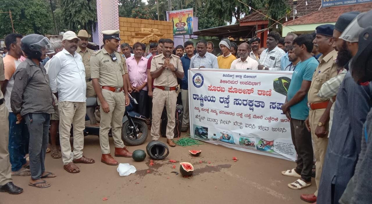 ಸಾರ್ವಜನಿಕರಲ್ಲಿ ಜಾಗೃತಿ ಮೂಡಿಸುವ ಸಲುವಾಗಿ ಪ್ರಾತ್ಯಕ್ಷಿಕೆಯನ್ನು ಮಾಡಿ ತೋರಿಸಿದ್ದು, ಕಲ್ಲಂಗಡಿ ಹಣ್ಣು ನೇರವಾಗಿ ನೆಲದ ಮೇಲೆ ಬಿದ್ದಾಗ ಯಾವ ರೀತಿ ಹೊಡೆದು ಹೋಗುತ್ತದೆ ಎಂದು ಹಾಗೂ ಹೆಲ್ಮೆಟ್