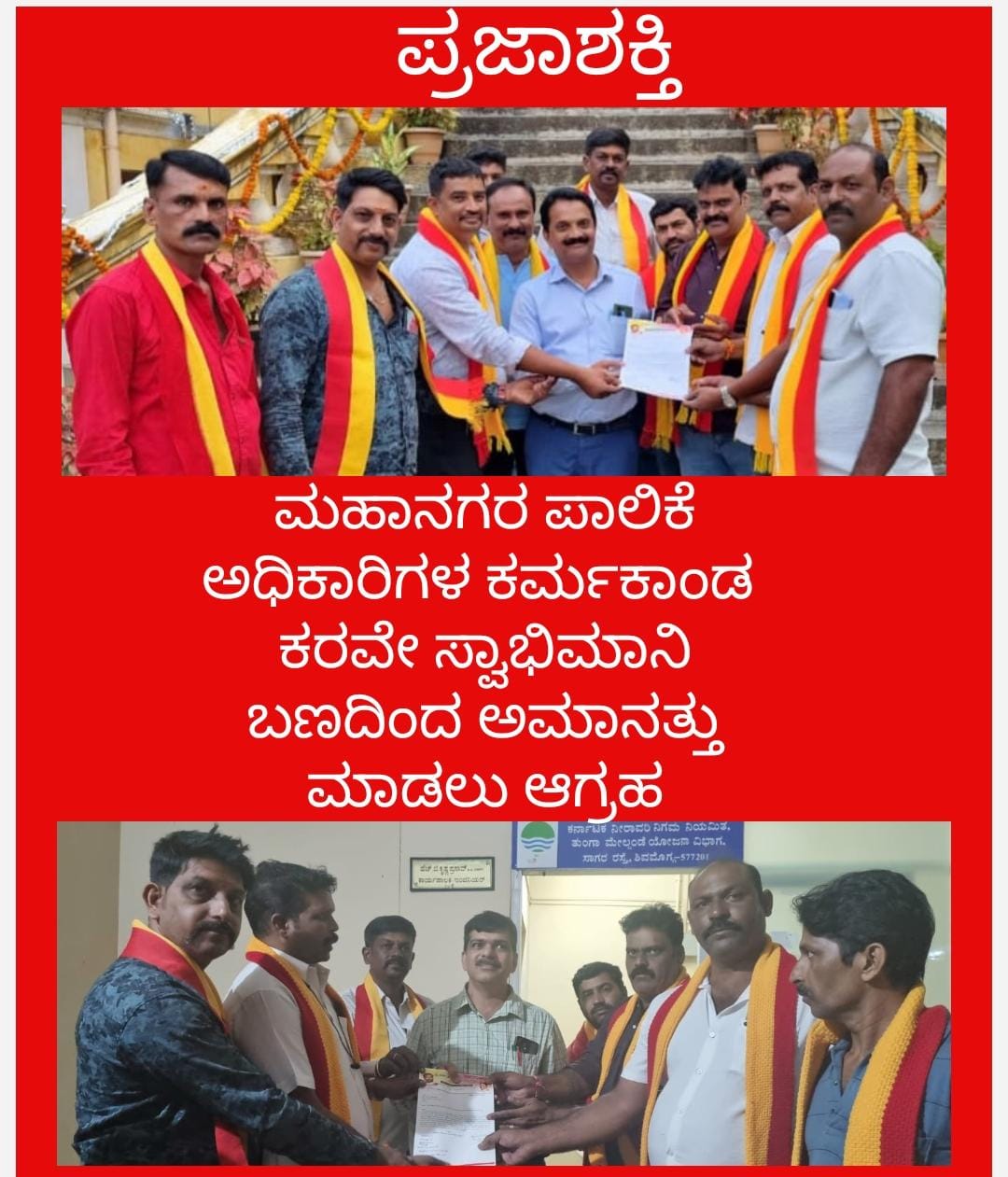 ಕರ್ನಾಟಕ ರಕ್ಷಣಾ ವೇದಿಕೆ ಸ್ವಾಭಿಮಾನಿ ಬಡದಿಂದ ಮಹಾನಗರ ಪಾಲಿಕೆ ಆಯುಕ್ತರಿಗೆ ಪ್ರತಿಭಟಿಸಿ ಮನವಿ ಸಲ್ಲಿಸಿದರು.ಶಿವಮೊಗ್ಗ ನಗರದ ಜೆ ಎಚ್ ಪಟೇಲ್ ಬಡಾವಣೆಯಲ್ಲಿನ ಹಾಲಿ ಚಾಲನೆಯಲ್ಲಿರುವ ಒಳಚರಂಡಿ ಕೊಳವೆ ಮಾರ್ಗಗಳನ್ನು ನಾರ್ಧನ್ ಔಟ್ ಪಾಲ್ ಗೆ ಲಿಂಕ್ ಮಾಡುವ ಕಾಮಗಾರಿಯನ್ನು ತರಾತುರಿಯಲ್ಲಿ ಪ್ರಾರಂಭ ಮಾಡಿದ್ದು ಅಂದಾಜು ವೆಚ್ಚ 83.70, ಲಕ್ಷದ ಕಾಮಗಾರಿಗೆ ನಿಯಮದ ಪ್ರಕಾರ ಕರ್ನಾಟಕ ನೀರಾವರಿ ನಿಗಮ ನಿಯಮಿತದಿಂದ ಅನುಮತಿಯನ್ನು ತೆಗೆದುಕೊಂಡು ಕಾಮಗಾರಿಯನ್ನು ಪ್ರಾರಂಭಿಸಬೇಕಿತ್ತು, ಆದರೆ ತರಾತುರಿಯಲ್ಲಿ ಮಹಾನಗರ ಪಾಲಿಕೆಯ ಅಧಿಕಾರಿಗಳು ತುಂಗಾ ಮೇಲ್ದಂಡೆ ಯೋಜನಾ ವಿಭಾಗದಿಂದ ಮೇಲ್ಕಂಡ ಕಾಮಗಾರಿಗೆ ಸಂಬಂಧಿಸಿದಂತೆ ನಿರಾಕ್ಷೇಪಣಾ ಪತ್ರ ಪಡೆಯದೆ ಕಾಮಗಾರಿ ಮಾಡಿರುವುದು ಕರ್ತವ್ಯ ಲೋಪವಾಗಿದೆ ಹಾಗೆಯೇ ತುಂಗಾ ಮೇಲ್ದಂಡೆ ಯೋಜನೆ ವಿಭಾಗದಿಂದ ಅನುಮತಿ ಪತ್ರ ಸಿಗುವ ಮುನ್ನವೇ ತಮ್ಮ ಇಲಾಖೆಯ ಅಧಿಕಾರಿಗಳು ಈ ಕಾಮಗಾರಿಗೆ ಸಂಬಂಧಿಸಿದಂತೆ ಕಾರ್ಯ ಆದೇಶ ನೀಡಿದ್ದಾರೆ ಇದು ಕೂಡ ಕರ್ತವ್ಯ ಲೋಪವಾಗಿದೆ.
