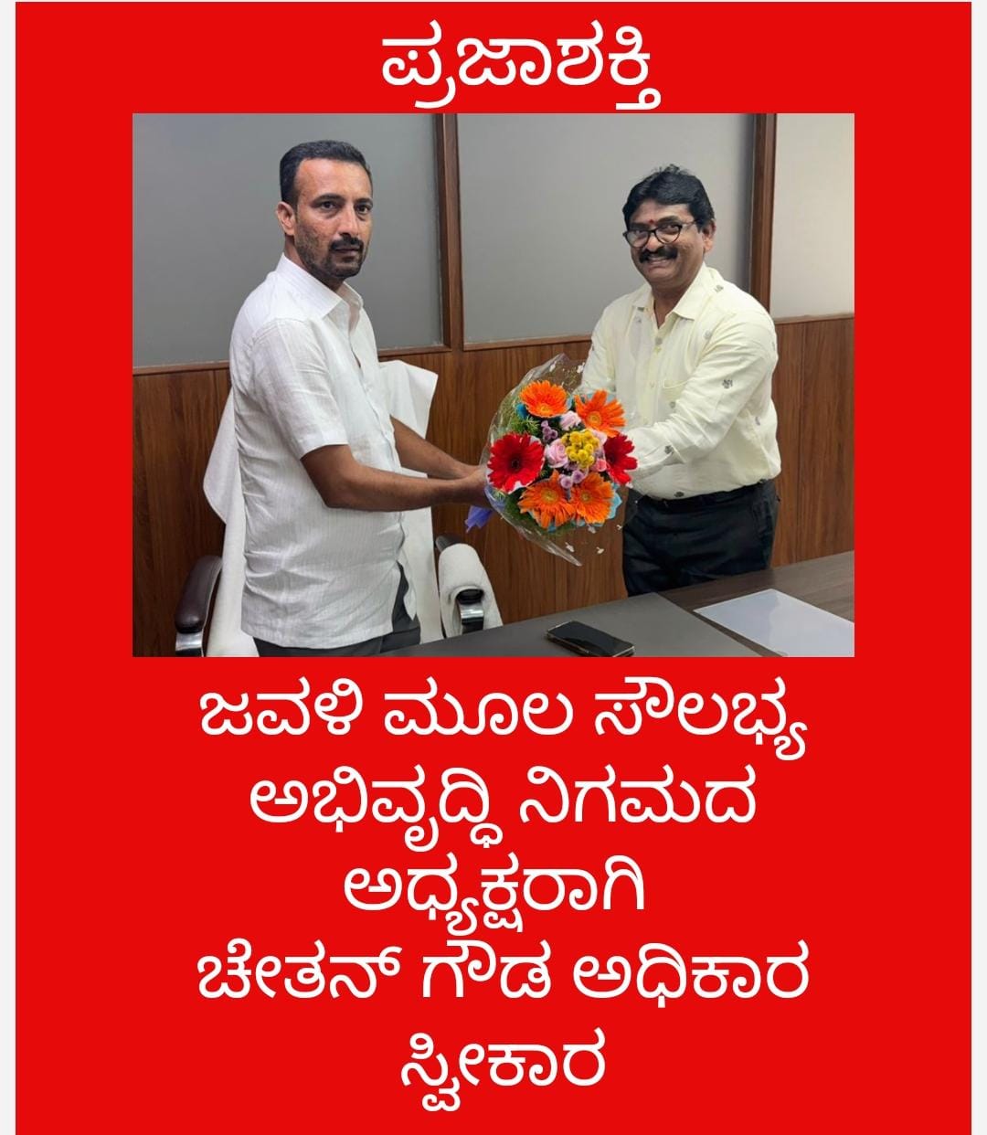 ರಾಜ್ಯ ಜವಳಿ ಮೂಲ ಸೌಲಭ್ಯ ಅಭಿವೃದ್ಧಿ ನಿಗಮದ ನೂತನ ಅಧ್ಯಕ್ಷರಾಗಿ ಚೇತನ್ ಗೌಡ ಅಧಿಕಾರ ಸ್ವೀಕಾರ…