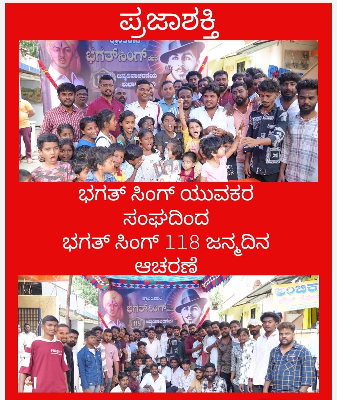 ಶಿವಮೊಗ್ಗದ ಗಾಂಧಿ ಬಜಾರ್ ನ ಉಪ್ಪಾರ ಕೇರಿಯಲ್ಲಿ, ಭಗತ್ ಸಿಂಗ್ ಯುವಕರ ಸಂಘದ ವತಿಯಿಂದ ಆಯೋಜಿಸಲಾಗಿದ್ದ ಕ್ರಾಂತಿಕಾರಿ ಭಗತ್ ಸಿಂಗ್ ಅವರ 118 ಜನುಮ ದಿನಾಚರಣೆ ಕಾರ್ಯಕ್ರಮಕ್ಕೆ ಭಗತ್ ಸಿಂಗ್ ಭಾವಚಿತ್ರಕ್ಕೆ ಪುಷ್ಪನಮನ ಸಲ್ಲಿಸಿ ಚಾಲನೆ ನೀಡಿ ಅವರು ಹೇಳಿದರು.