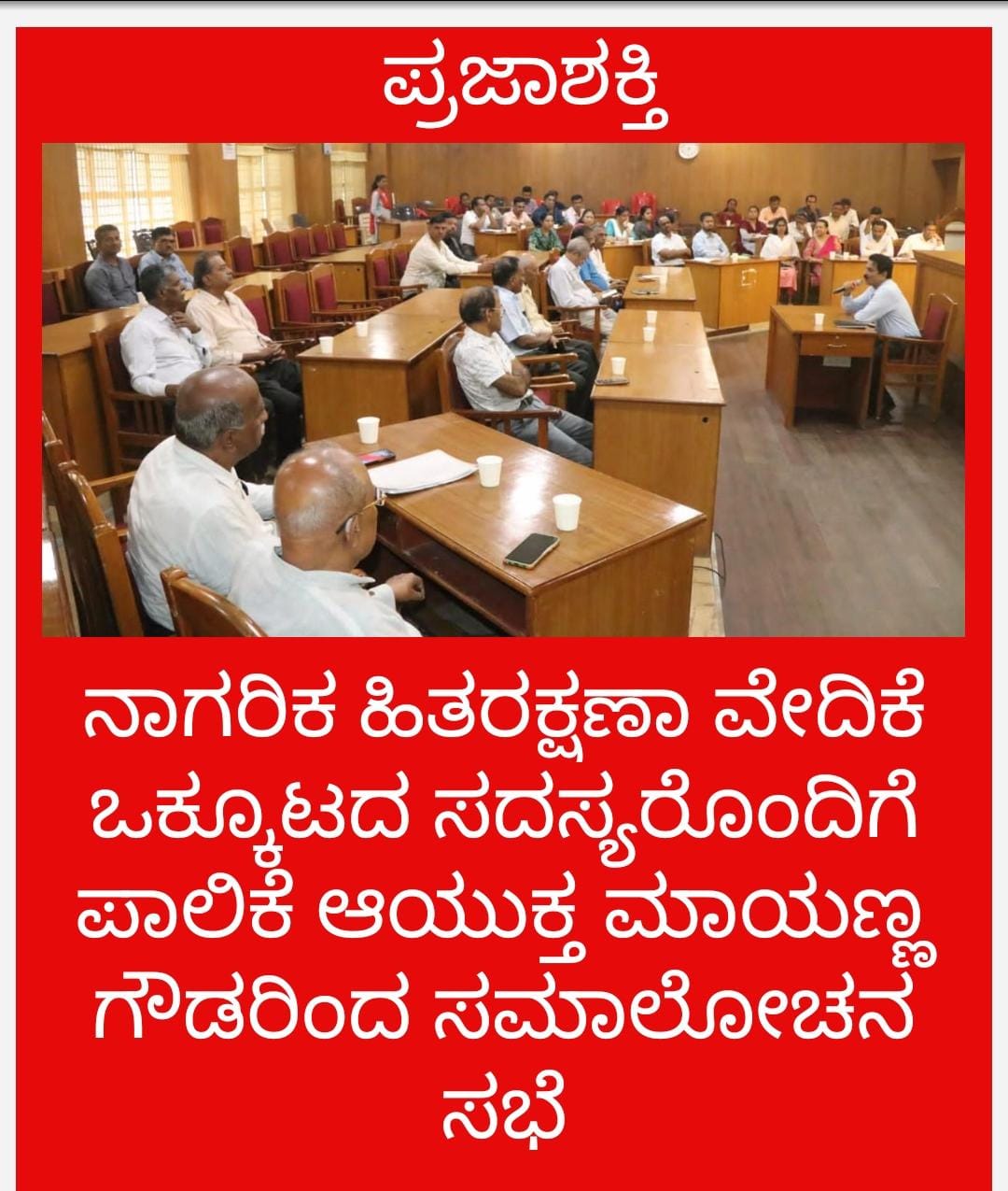 ನಾಗರಿಕ ಹಿತರಕ್ಷಣಾ ವೇದಿಕೆ ಒಕ್ಕೂಟದ ಸದಸ್ಯರೊಂದಿಗೆ ಮಹಾನಗರ ಪಾಲಿಕೆ ಆಯುಕ್ತರದ ಮಾಯಣ್ಣ ಗೌಡ ಅವರೊಂದಿಗೆ ಸಮಾಲೋಚನ ಸಭೆ ನಡೆಸಿದರು.