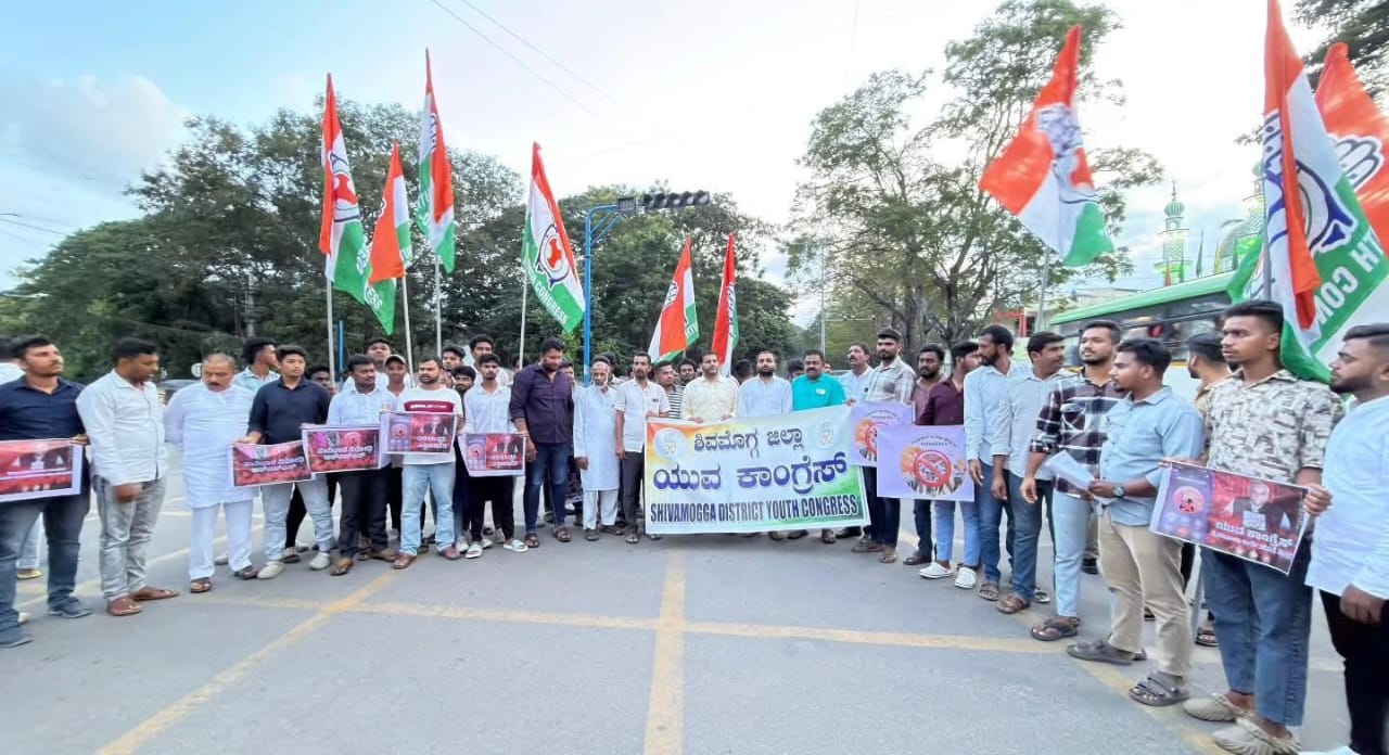 ಆರ್ ಎಸ್ ಎಸ್ ನಿರ್ಬಂಧ ಹಾಕಿರುವ ವಿಷಯವಾಗಿ ಗ್ರಾಮೀಣ ಅಭಿವೃದ್ಧಿ ಮತ್ತು ಪಂಚಾಯತ್ ರಾಜ್ ಇಲಾಖೆ ಸಚಿವ ಪ್ರಿಯಾಂಕ ಖರ್ಗೆ ಅವರಿಗೆ ಜೀವ ಬೆದರಿಕೆ ಹಾಕಲಾಗಿದ್ದು, ಜೀವ ಬೆದರಿಕೆ ಹಾಕಿದ ಪ್ರಕರಣವನ್ನು ಉನ್ನತ ಮಠದ ತನಿಖೆ ಅಗ್ರಹಿಸಿ ಜಿಲ್ಲಾ ಯುವ ಕಾಂಗ್ರೆಸ್ ಅಧ್ಯಕ್ಷ ಹರ್ಷಿತ್ ಗೌಡ ನೇತೃತ್ವದಲ್ಲಿ ಮಹಾವೀರ ವೃತ್ತದಲ್ಲಿ ಪ್ರತಿಭಟನೆ ನಡೆಸಿದರು.