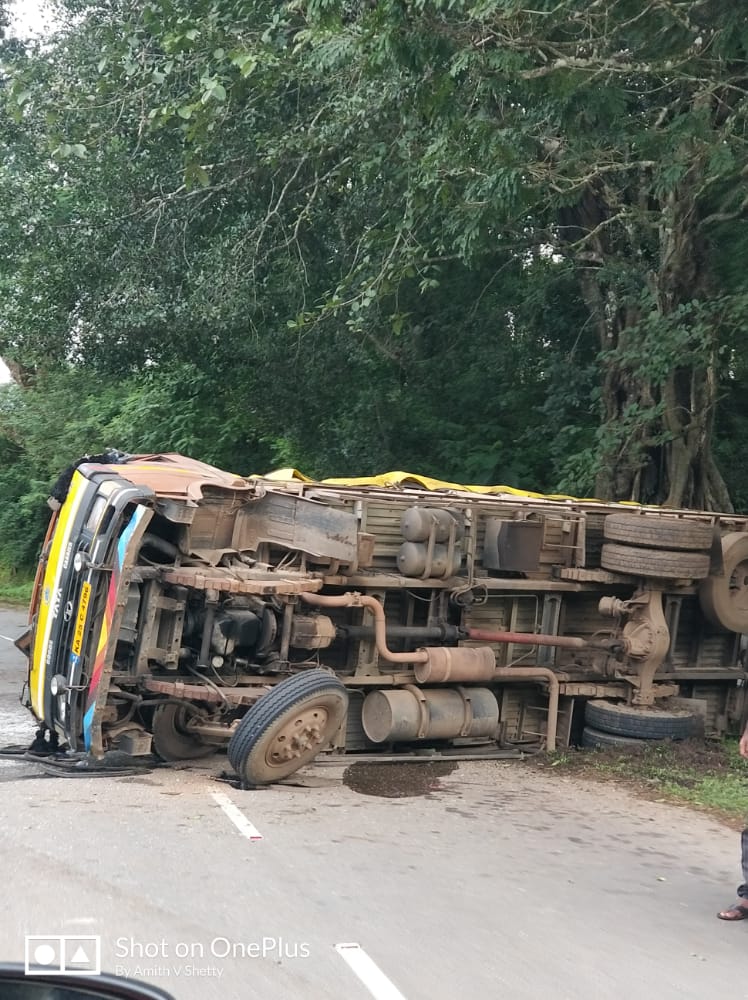 ಶಿವಮೊಗ್ಗದಿಂದ ಮಂಗಳೂರಿಗೆ ಹೋಗುತ್ತಿದ್ದ ಲಾರಿಯು ಶಿವಮೊಗ್ಗದ ಹೋಟೆಲ್ ನಲ್ಲಿ ಬಳಕೆಯಾಗುತ್ತಿದ್ದ ಹೊಟ್ಟು ತುಂಬಿಕೊಂಡು ಹೋಗುತ್ತಿತ್ತು. ಚಾಲಕನ ನಿಯಂತ್ರಣ ತಪ್ಪಿ ಲಾರಿ ಪಲ್ಟಿ ಹೊಡೆದಿತ್ತು.