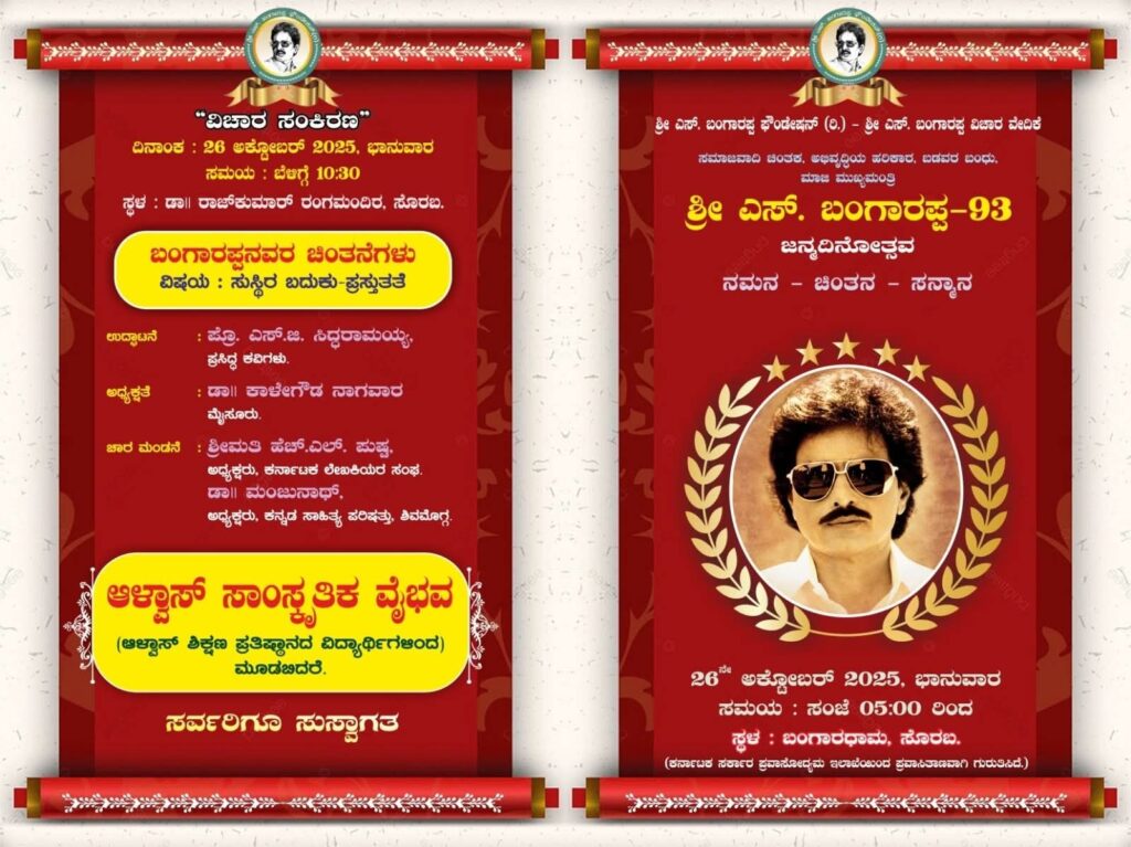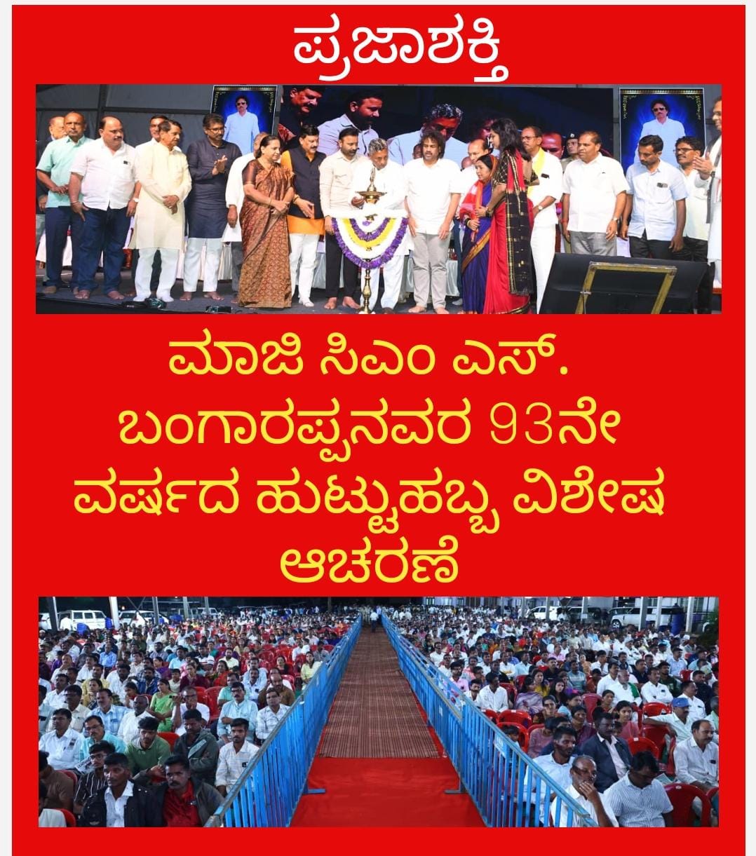 ಕರ್ನಾಟಕ ಕಂಡ ವರ್ಣ ರಂಜಿತ ರಾಜಕಾರಣಿ, ಬಡವರ ಬಂಧು ಮಾಜಿಮುಖ್ಯಮಂತ್ರಿ ಎಸ್. ಬಂಗಾರಪ್ಪ ಅವರ 93ನೇ ವರ್ಷದ ಹುಟ್ಟುಹಬ್ಬವನ್ನು ಭಾನುವಾರ ಸೊರಬದ ಬಂಗಾರ ಧಾಮ ಮತ್ತು ಡಾ.ರಾಜ್ ಕುಮಾರ್ ರಂಗಮಂದಿರದ ಆವರಣದ ಭವ್ಯ ವೇದಿಕೆಯಲ್ಲಿ ತುಂಬಾ ವಿಶೇಷವಾಗಿ ಆಚರಿಸಲಾಯಿತು.