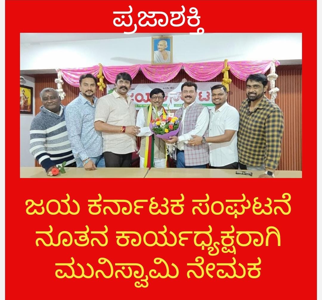 ಜಯ ಕರ್ನಾಟಕ ಸಂಘಟನೆ ನೂತನ ಕಾರ್ಯಧ್ಯಕ್ಷರಾಗಿ ಮುನಿಸ್ವಾಮಿ ರವರು ಆಯ್ಕೆಯಾಗಿದ್ದಾರೆ. ರಾಜ್ಯದ್ಯಕ್ಷ ಜಗದೀಶ್ ರವರು ನೇಮಕ ಮಾಡಿ ಆದೇಶ ಹೊರಡಿಸಿದ್ದಾರೆ.