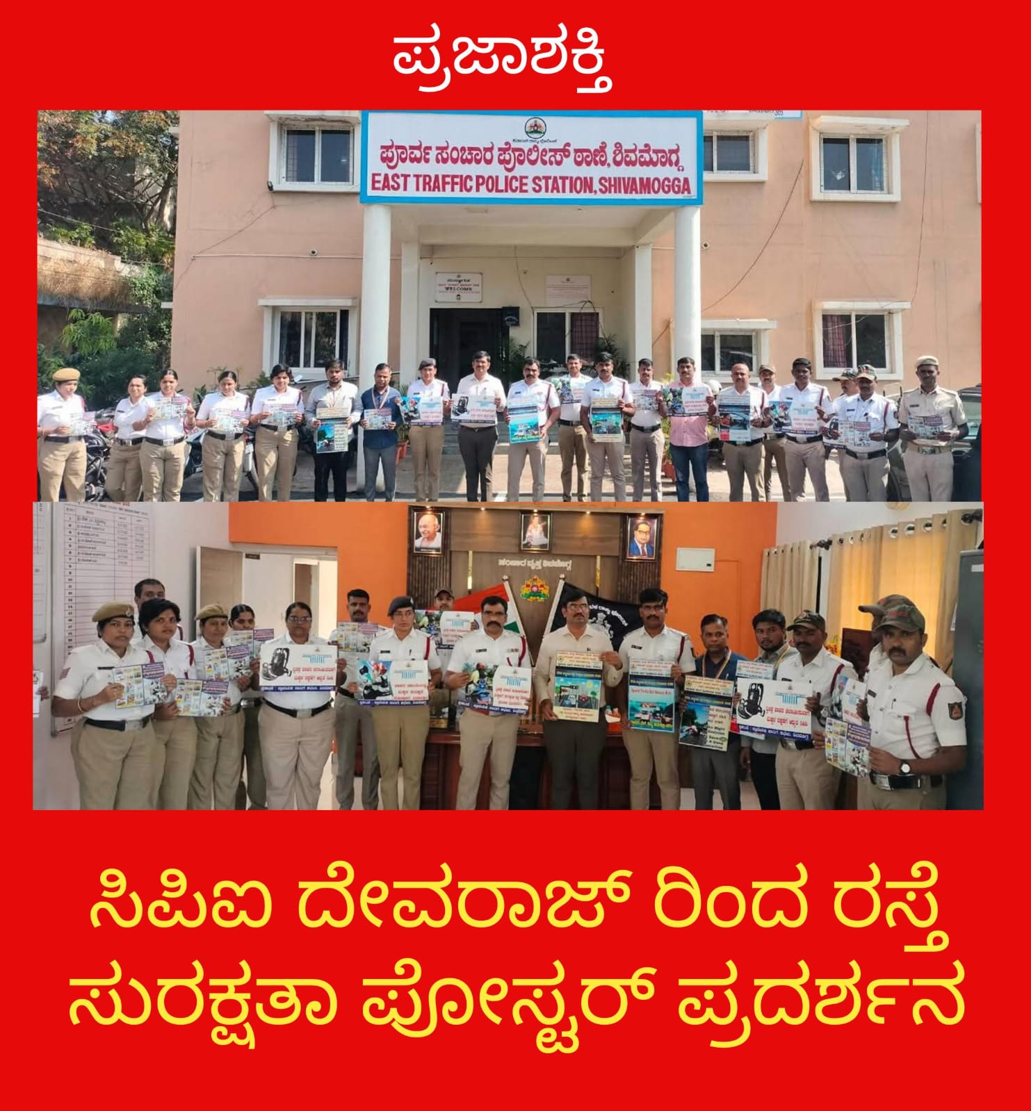 ನಗರದ ಸಂಚಾರಿ ವೃತ್ತದ ಕಚೇರಿಯಲ್ಲಿ ರಸ್ತೆ ಸುರಕ್ಷತಾ ಮಾಸದ ಪೋಸ್ಟರ್ ಗಳು ಮತ್ತು ಕರ ಪತ್ರಗಳನ್ನು ಪ್ರದರ್ಶನ ಮಾಡಿದರು. ಈ ಸಮಯದಲ್ಲಿ ಮಾತನಾಡಿದ ದೇವರಾಜ್ ರವರು ಪ್ರತಿಯೊಬ್ಬ ವ್ಯಕ್ತಿಯು ಕಡ್ಡಾಯವಾಗಿ ರಸ್ತೆ ಸುರಕ್ಷತಾ ಕ್ರಮವನ್ನು ಪಾಲಿಸಬೇಕು ಎಂದರು.